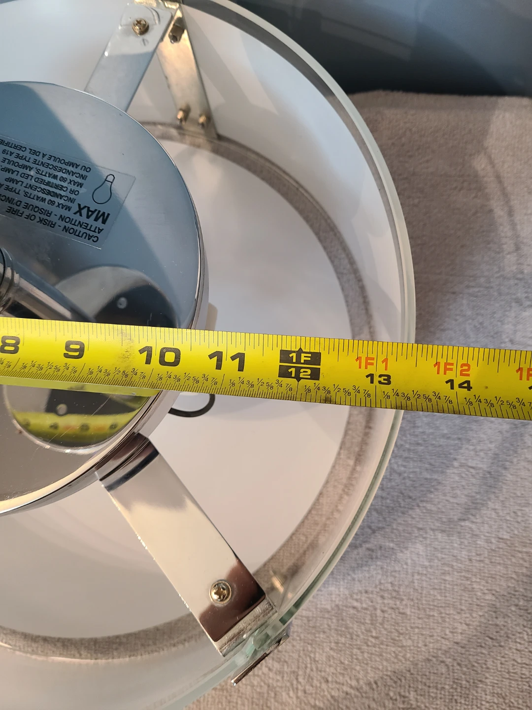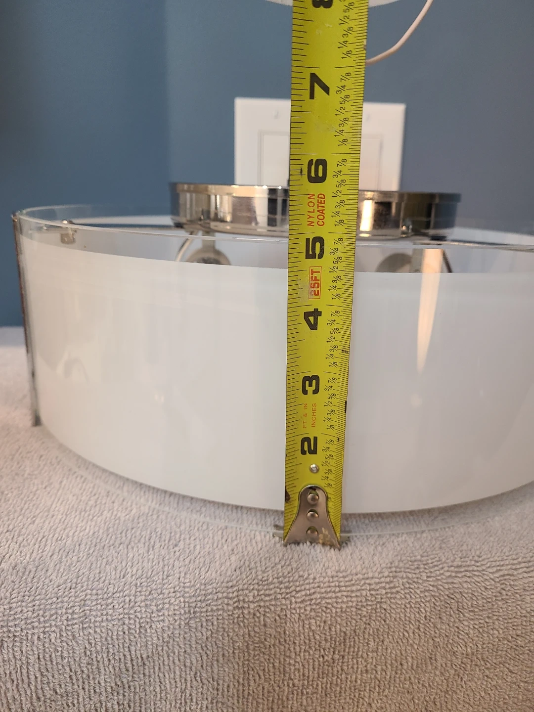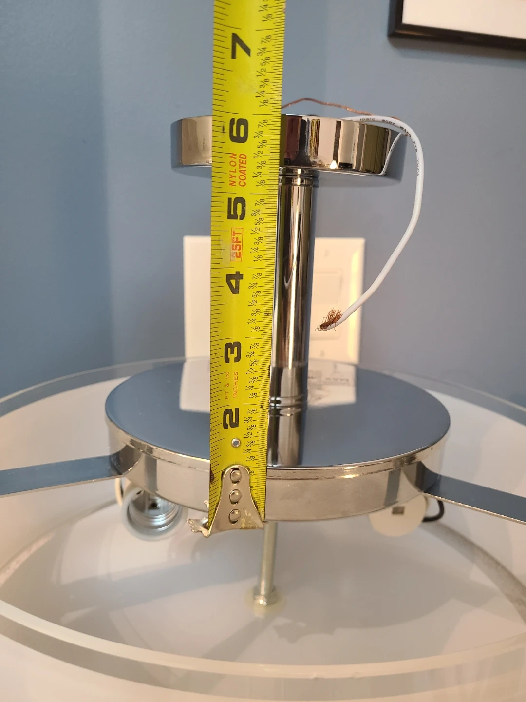 Fixture width is 13.5" with a glass height of 5" and a base+mount height of 6".