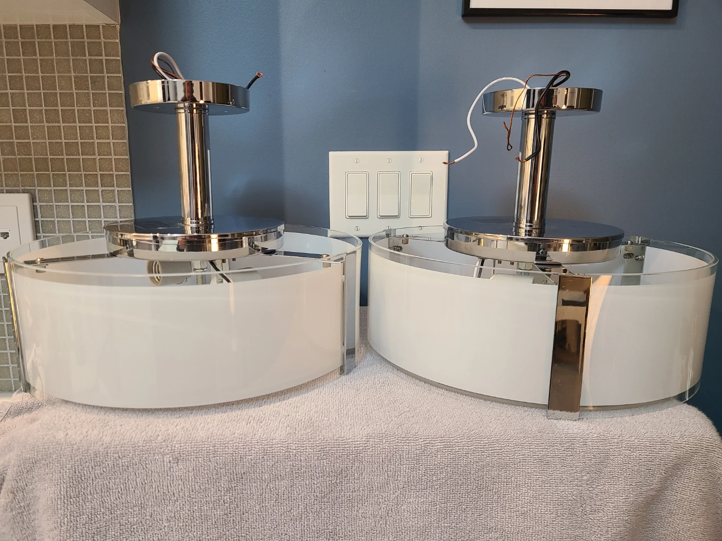 These lights are in good condition, ready to brighten up any room. Add a touch of elegance to your home with these stylish ceiling fixtures!
