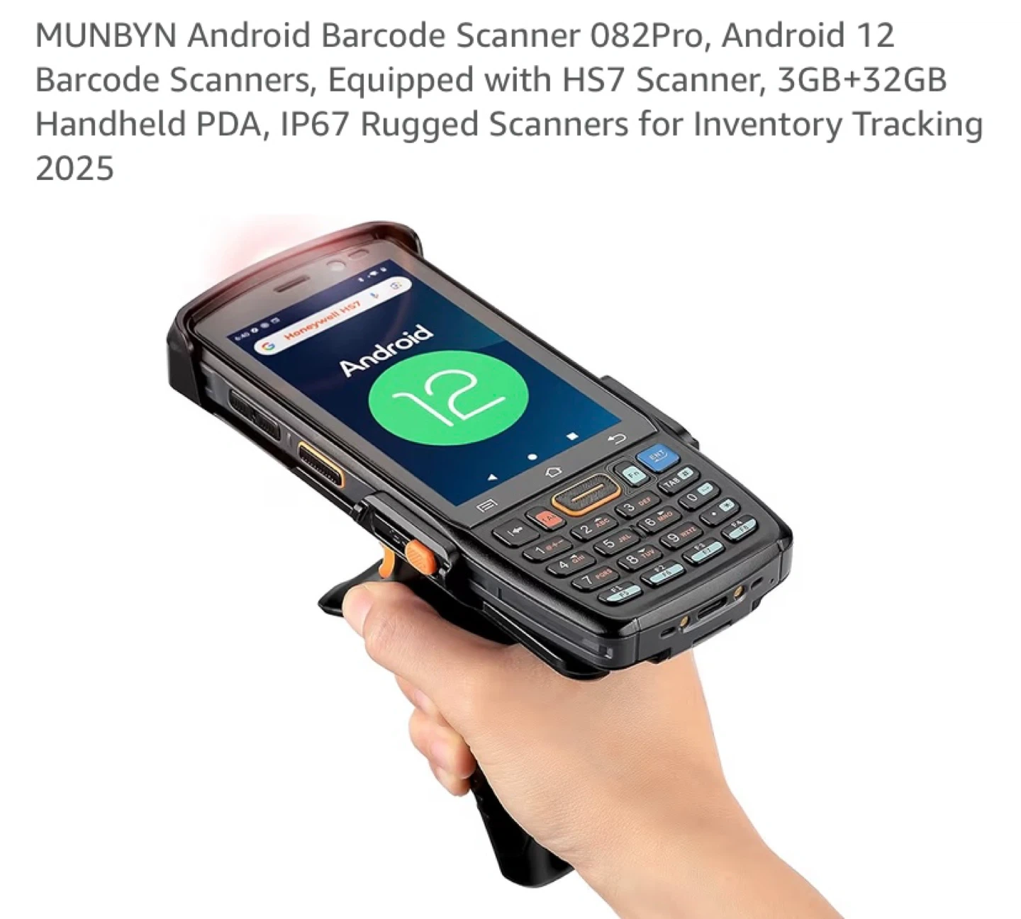 Powerful Android 12] MUNBYN handheld scanner 082Pro is equipped with the Android 12 system and has obtained Google Mobile Services (GMS) certification, seamlessly running inventory scanning software such as InFlow, Zoho, Sortly, Odoo, Orcascan, and more. Android 12 features advanced privacy and security mechanisms to ensure the safety of data transmission and storage, providing a reliable solution for warehouse management.