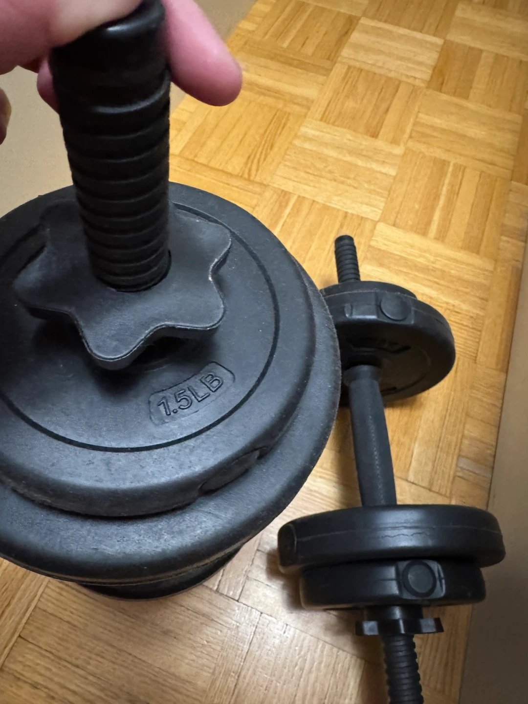 Selling a pair of adjustable dumbbells! One dumbbell can be adjusted up to 20lbs.