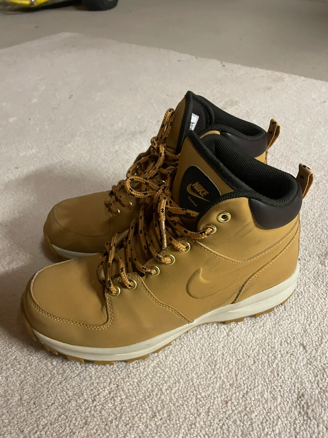 Selling a pair of barely worn Nike Manoa leather boots in a men's size 8. These are a stylish and durable option for everyday wear. The boots have a classic design and are made with quality materials. They are in good condition and ready for a new owner!