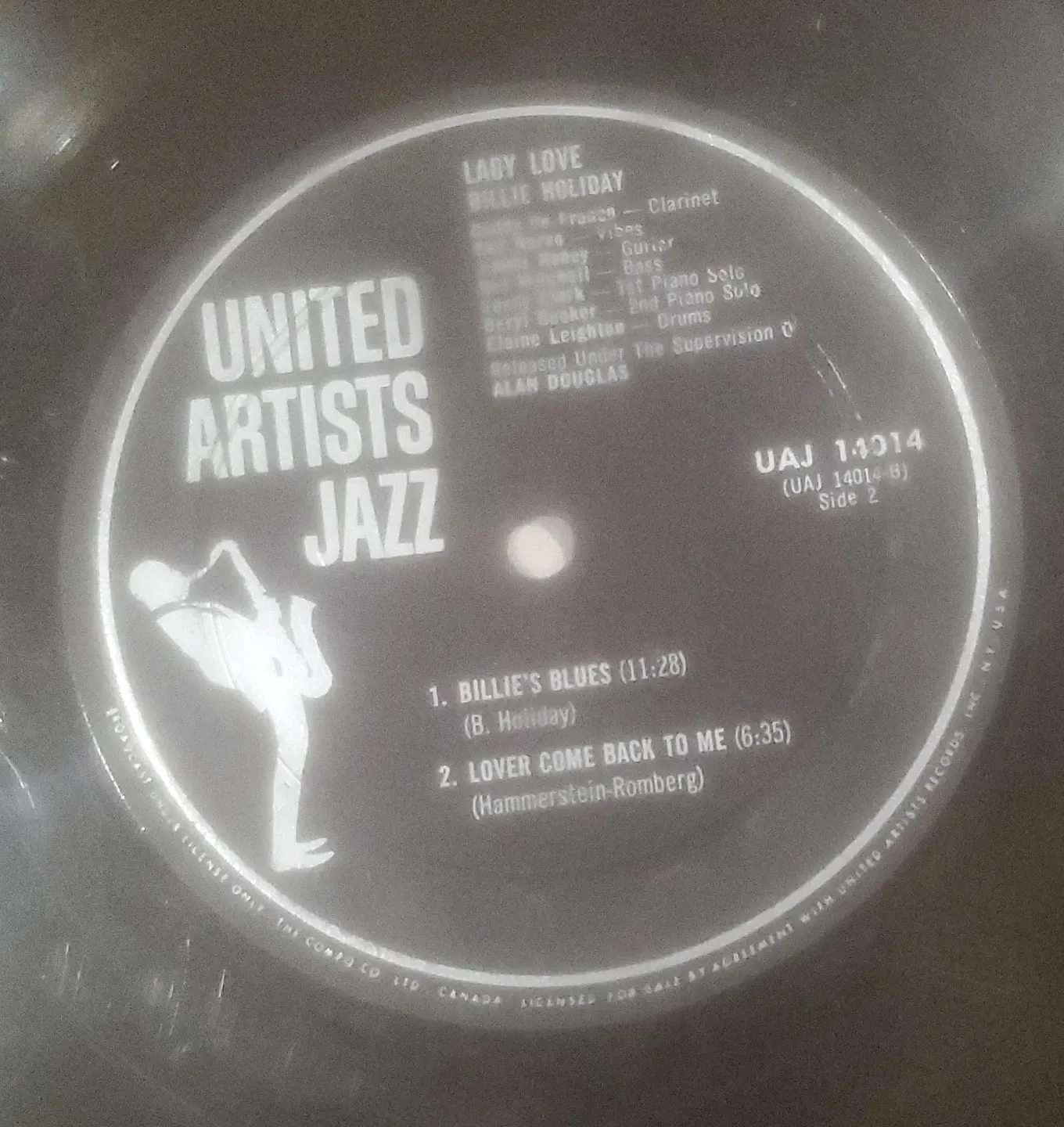 Selling a Billie Holiday vinyl record, "Lady Love" on United Artists Jazz. The record features classics like "Billie's Blues" and "Lover Come Back to Me". A great addition for any jazz enthusiast!