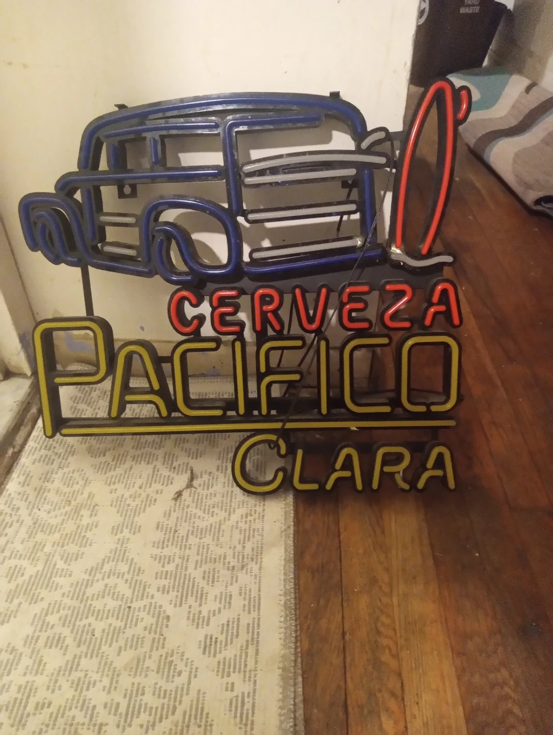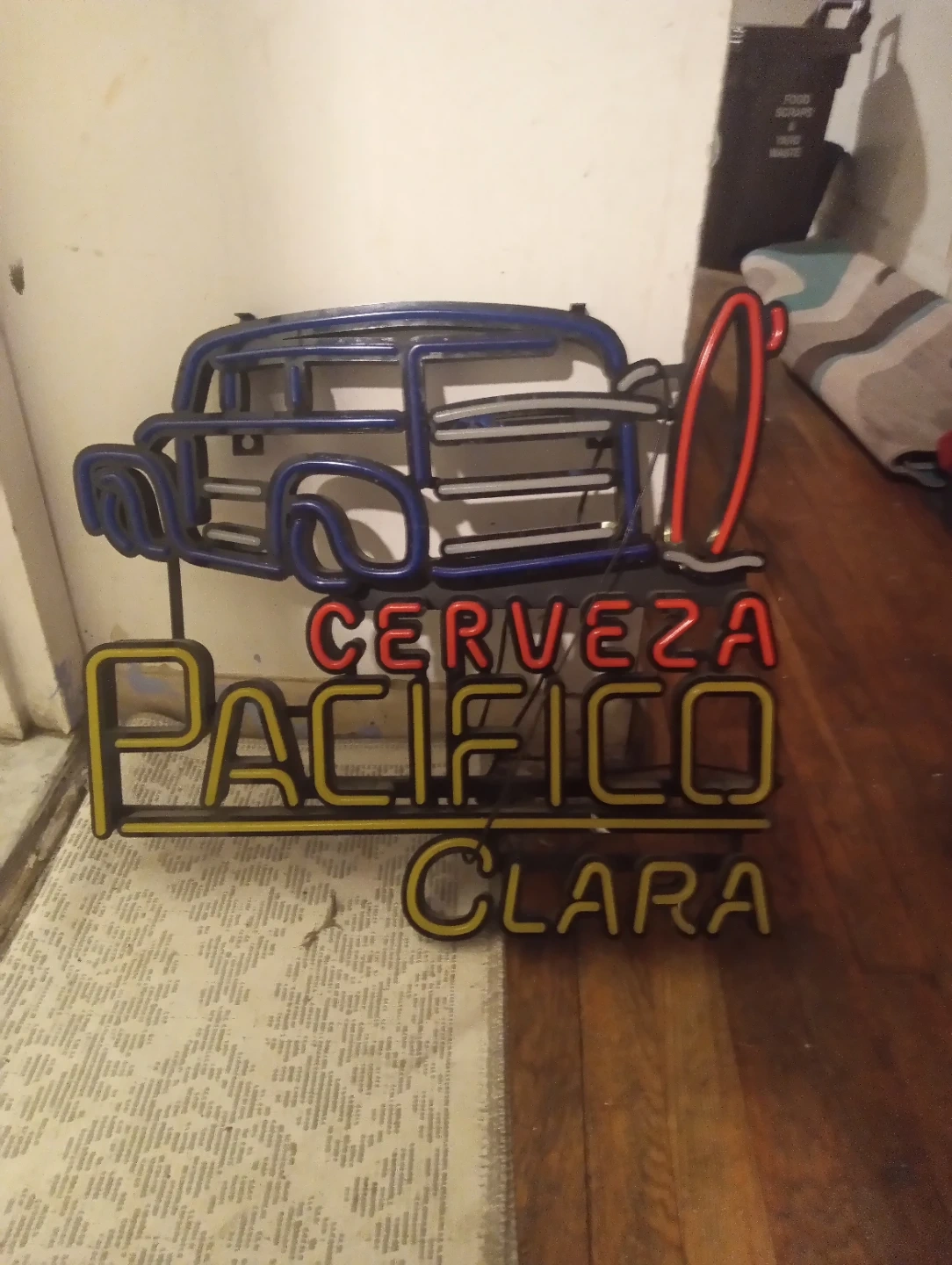 Selling a Pacifico Clara neon sign. It features the Pacifico logo with a car and surfboard design. Perfect for a bar or game room!