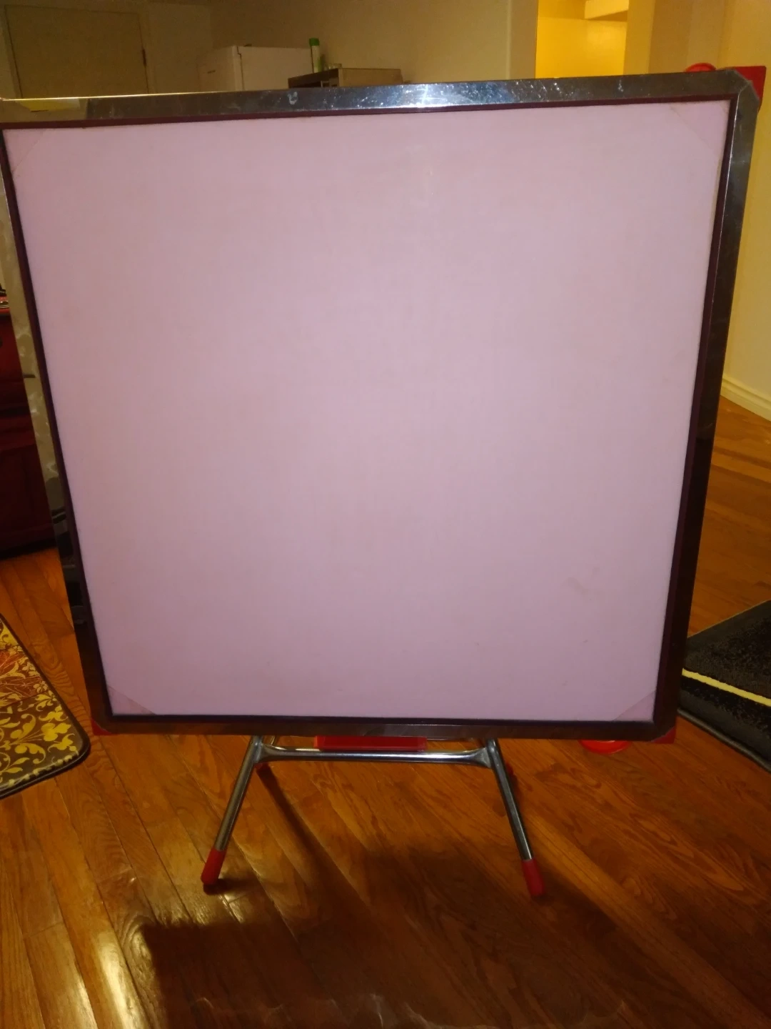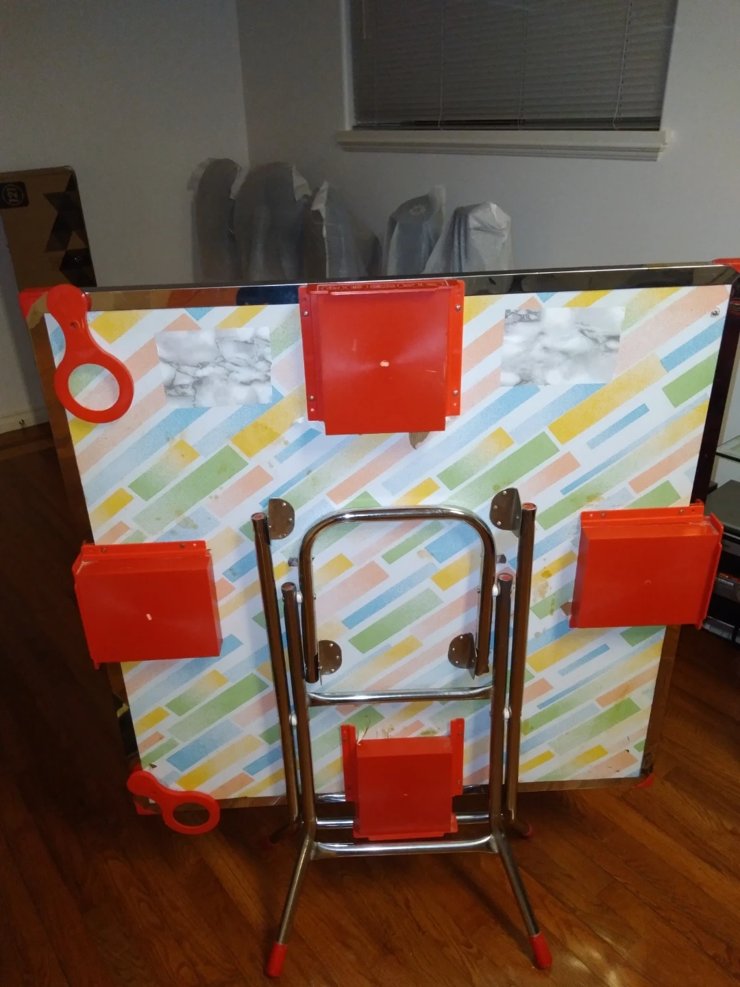 Table is made of metal with a smooth velvet top. Table also has 4 money drawers. Space saving dedign, the table can be folded and stored vertically.