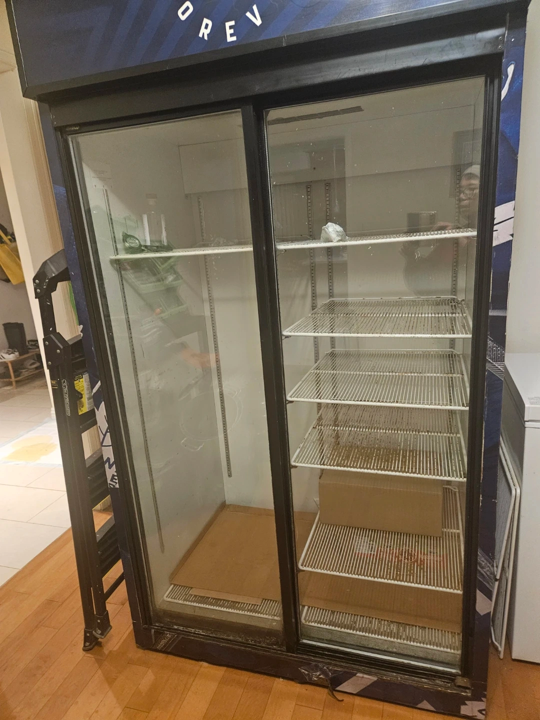 Selling a commercial display fridge. Needs repair / gas as its not cooling. It has sliding glass doors and multiple shelves for displaying items. Great for a store or business! 81.5 high 43 wide 33 depth in inches