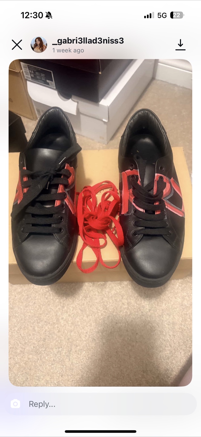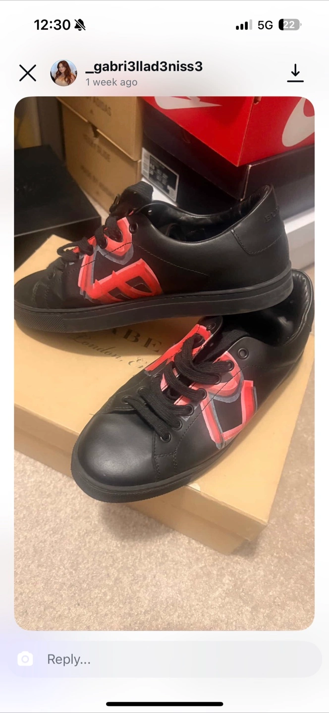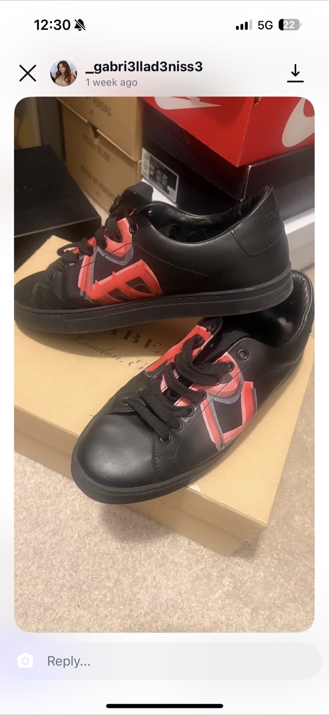 Selling a pair of Burberry sneakers in black leather. They are in good condition and come with an extra pair of red laces. The size is 39.5 (6.5 mens/youth) and they come with the original box.