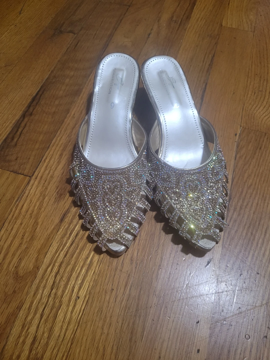 Selling a pair of beautiful J Collection mules, size 9! These are embellished with rhinestones and have a lovely, eye-catching design. Perfect for adding a touch of sparkle to any outfit!