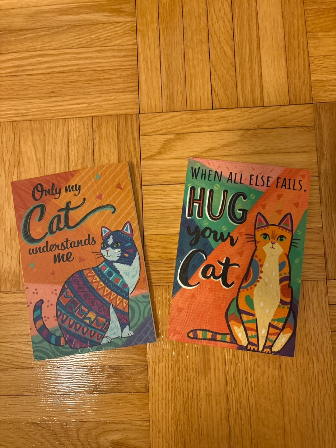 Two wooden cat pictures