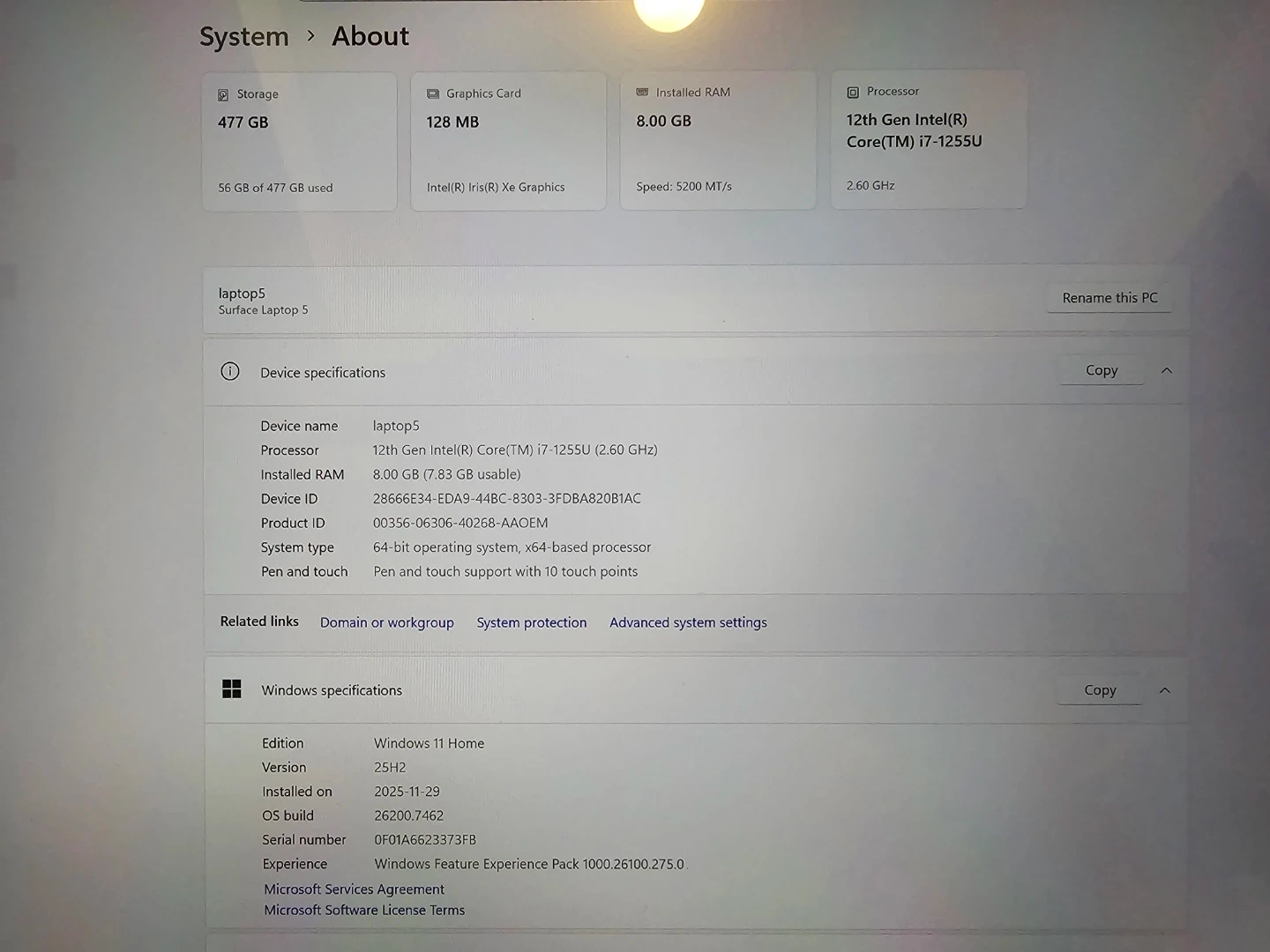 Processor Type: Intel Core i7-1255U