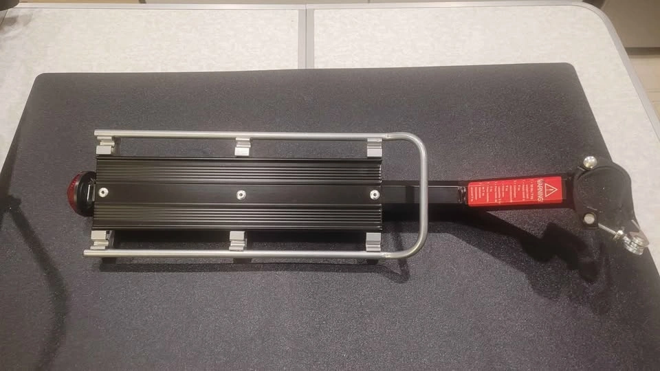 Seatpost and rear frame mount quick release style rack mount. Slight bent in flat area due to shipping. $45
