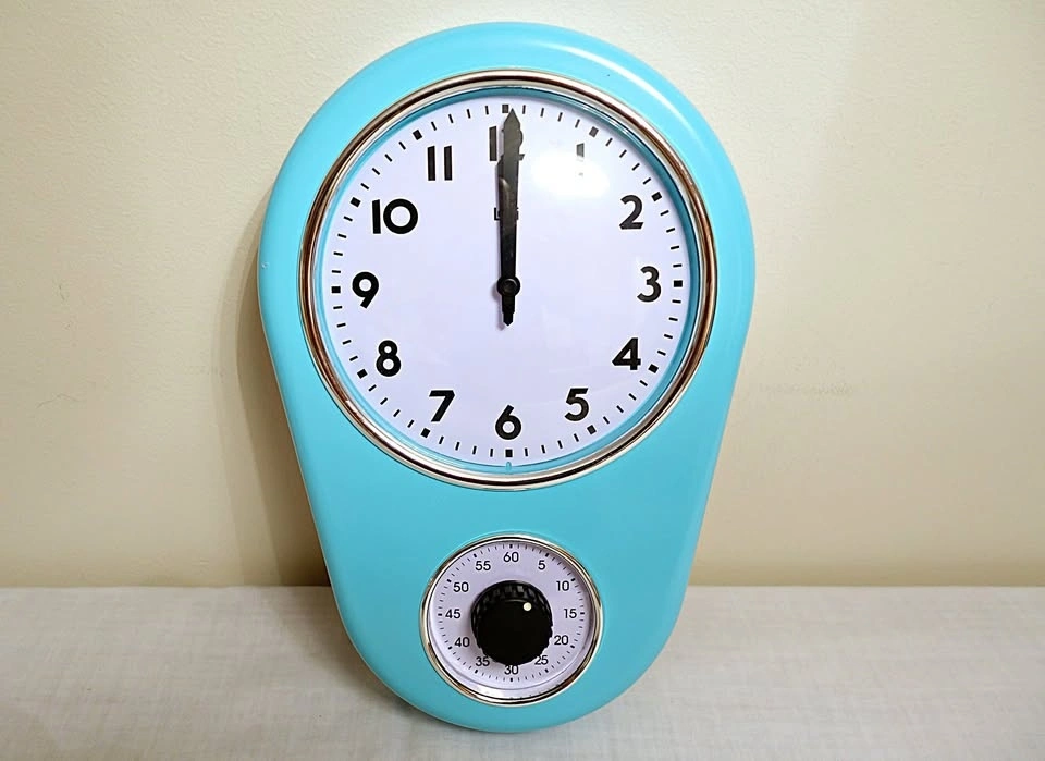 The clock also has an integrated 60-minute mechanical timer at the bottom. Although the timer does work, the alarm bell itself is faulty and doesn't work as it should. So, it's okay to use if you just need a visual reference to track how much time you have left. Other than that, it's basically new, never used.