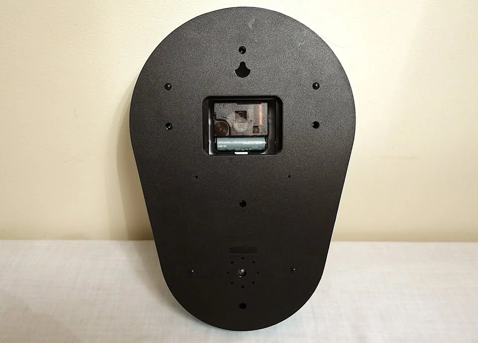 I'm selling a cute little wall clock inspired by the aesthetics of the 1950s and 1960s. It measures 12" long x 8.5" wide at its widest point. The clock runs on a single AA battery and works perfectly without any issue.