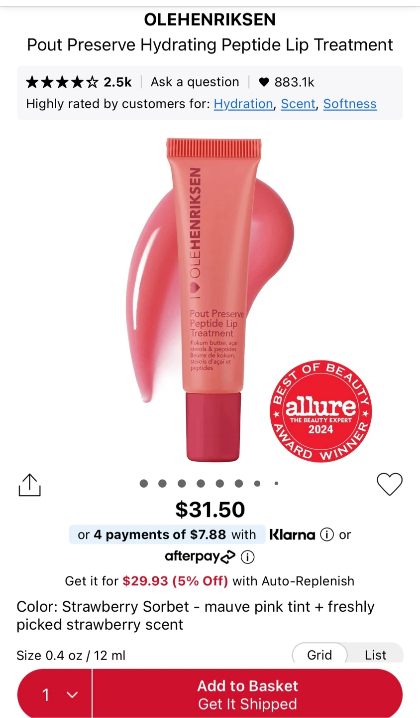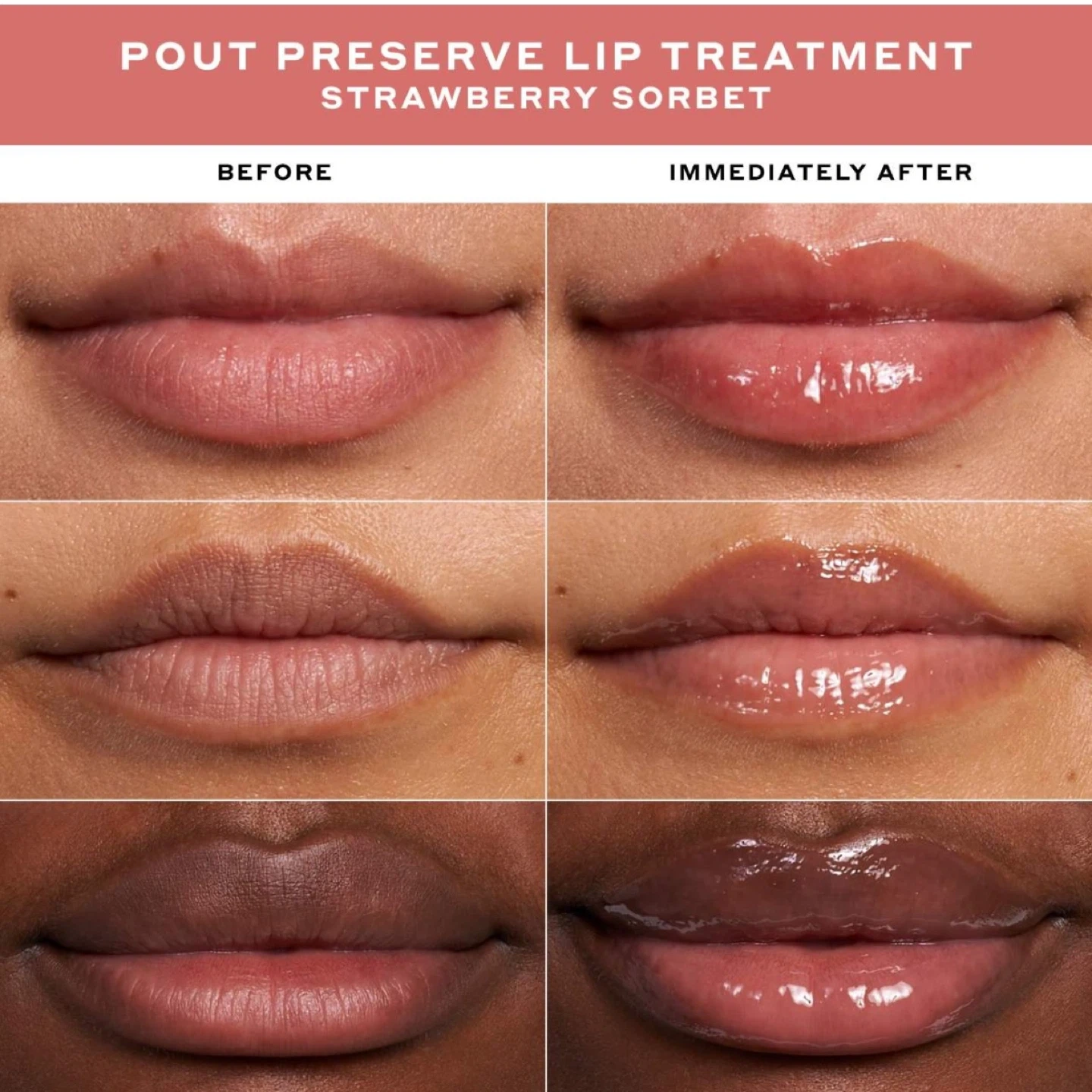 OLEHENRIKSEN Pout Preserve Peptide Lip Treatment. Designed to instantly reduce the look of lip lines and hydrate + improve elasticity. Teatment includes kokum butter, acai sterols & peptides, and beurre de kokum, sterols d'acai et peptides. Strawberry sorbet colour and a freshly picked strawberry scent. Clinically proven to give you fuller-looking lips in just one week! Brand new - unopened/unused.