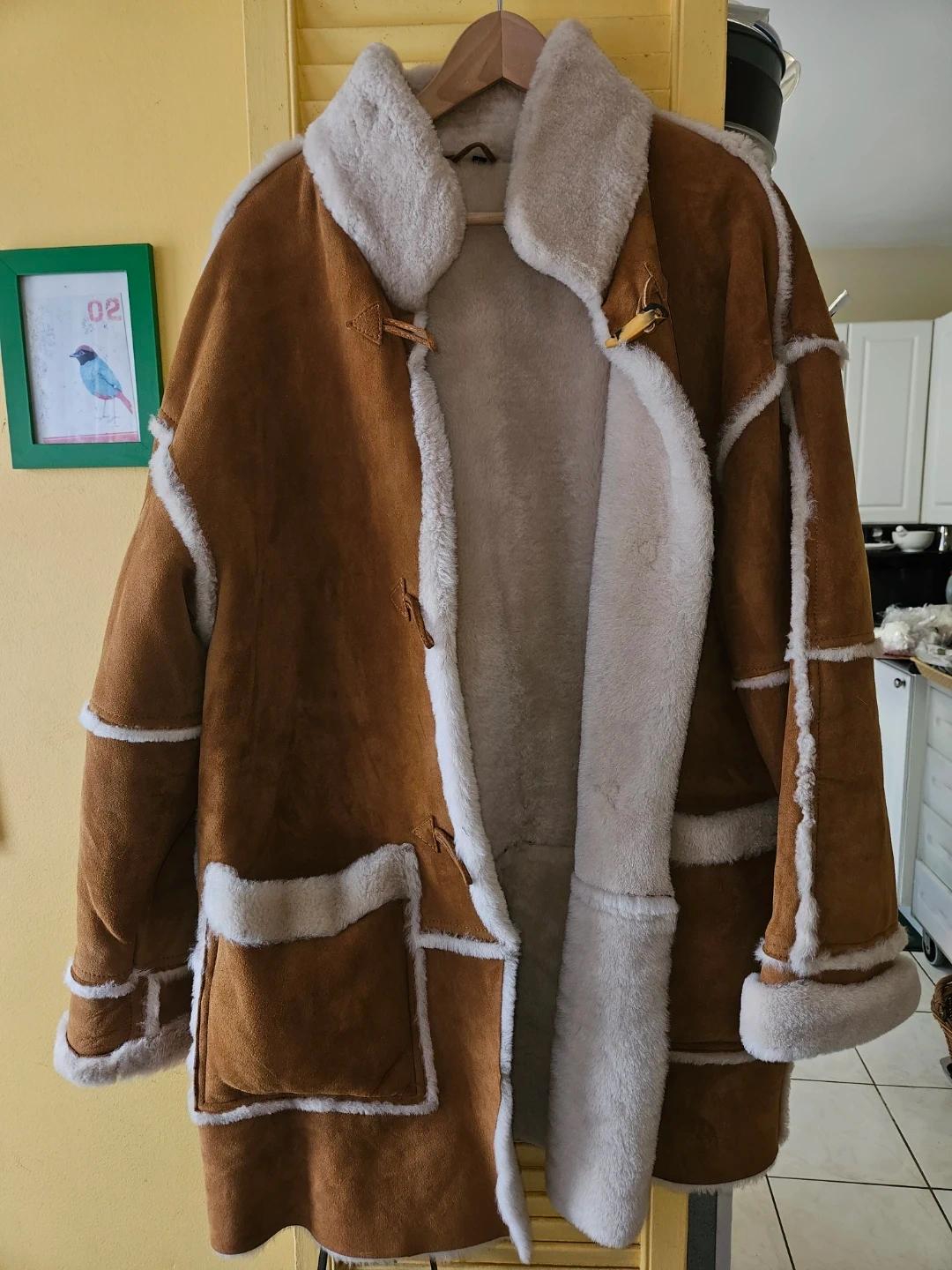 Here's a cozy Original Shearling coat from Polar Leather Fashion! It's a stylish and warm outerwear piece, perfect for colder weather. The coat features a classic design with a soft, shearling lining for added comfort and insulation. It's in absolutly great condition, never been worn,and ready to keep you snug this season! Super light, no weight, but extreamly warm. Made in Germany.