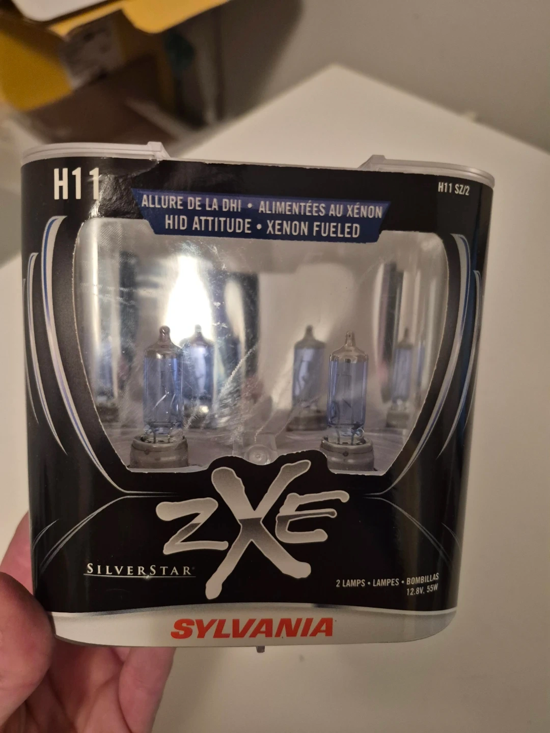 Selling a set of Sylvania SilverStar ZXE H11 headlight bulbs. These bulbs are designed to achieve the highest performance, which results in a product life that is less than standard. The package includes 2 lamps at 12.8V, 55W.