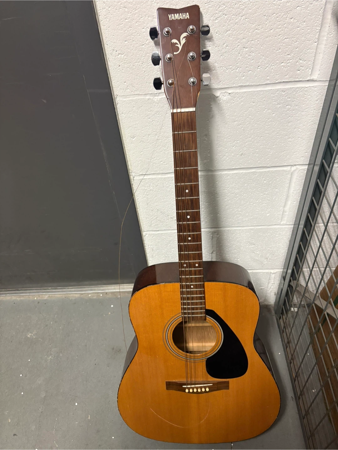 Selling a Yamaha acoustic guitar. It has some wear and tear, as you can see in the photos, but it's still a great instrument for anyone looking to play!