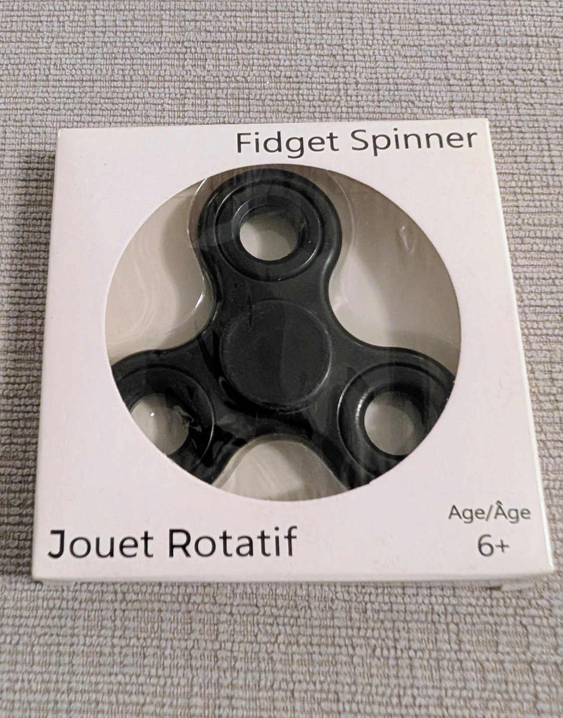 Selling a brand new fidget spinner! It's black and comes in its original packaging. Suitable for ages 6 and up. An addictive toy that you can play with anywhere, anytime