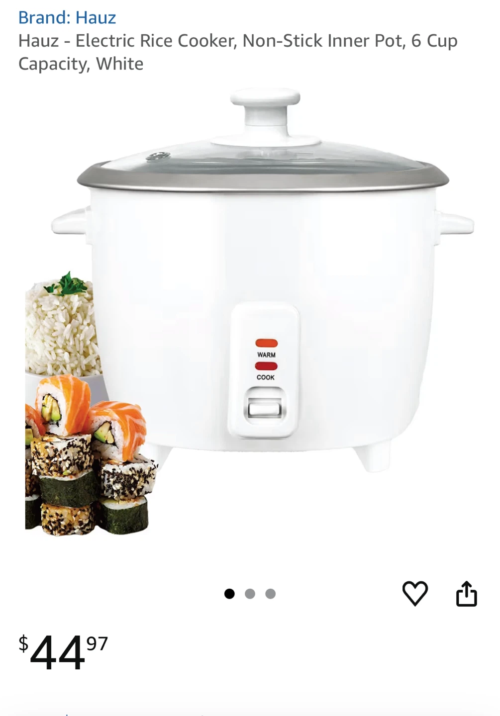 1 / 41 / 4Buy & SellNew Hauz Automatic Rice CookerNew Hauz Automatic Rice Cooker$15Selling a new Hauz Living Basics automatic rice cooker! Includes a measuring cup and spatula. Originally bought for $44.97.ConditionNewWHERE TO MEETMarkham and LawrenceView MapSELLERverifiedUrsulaWoburn50143 reviews0 chats·0 favorites·8 viewsSEND CHAT TO SELLERHi Ursula! I’m interested in your listing.Hi Ursula! I’m interested in your listing.Get the Karrot app to chatSign In to chat