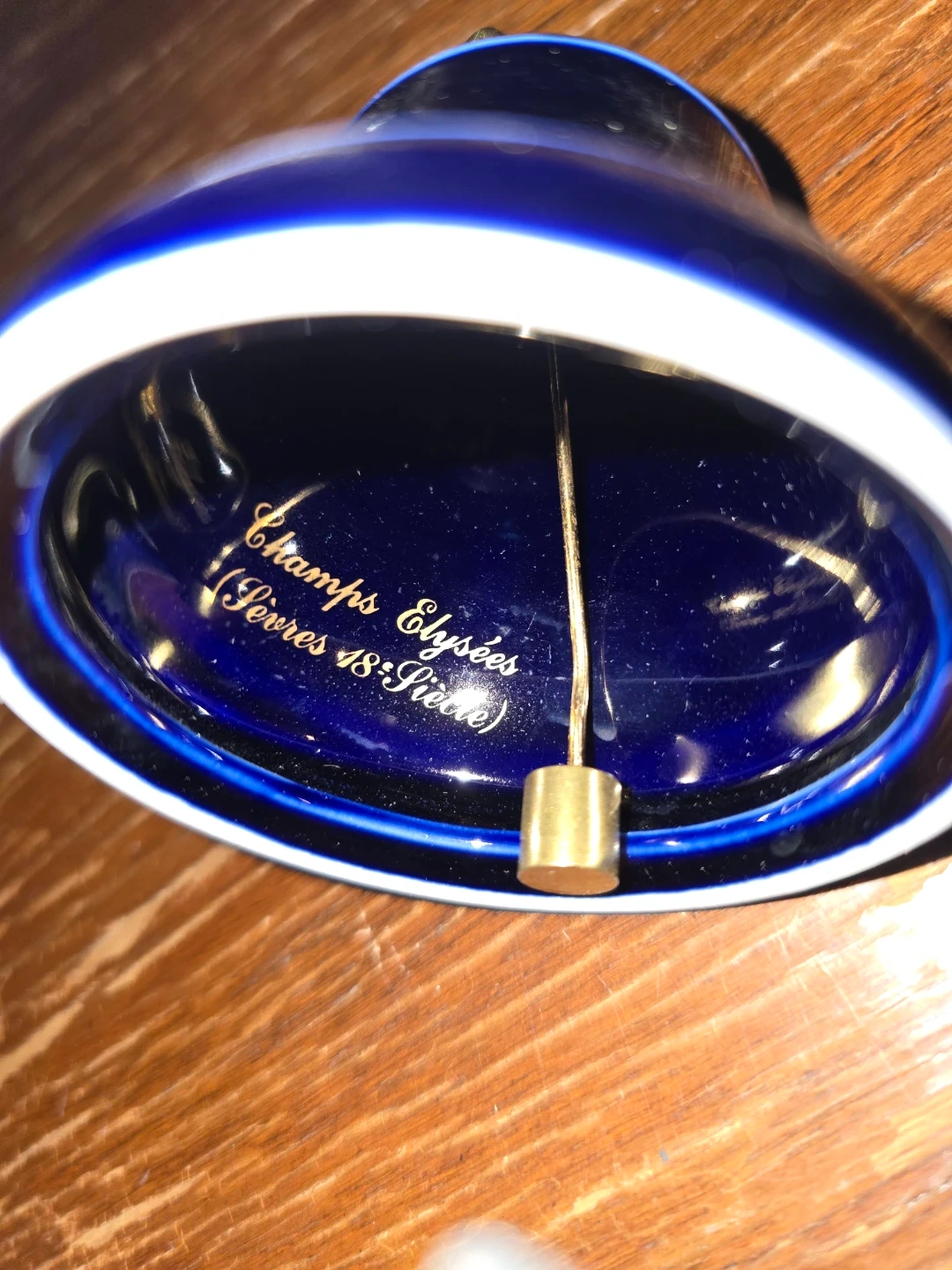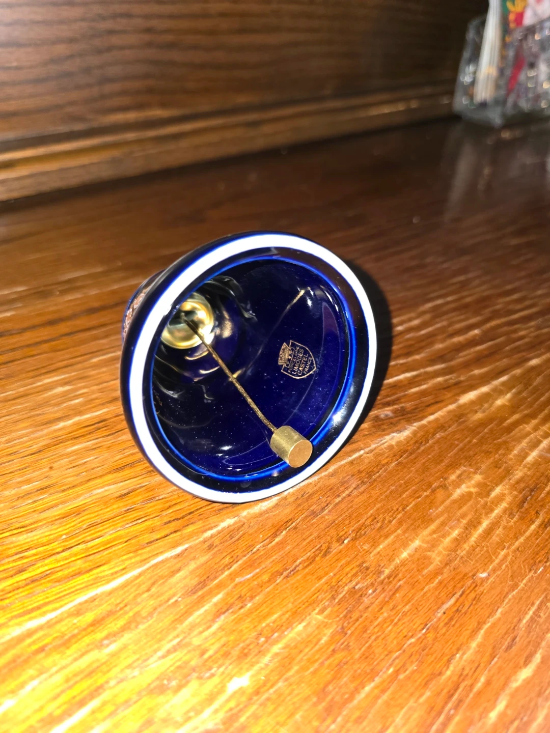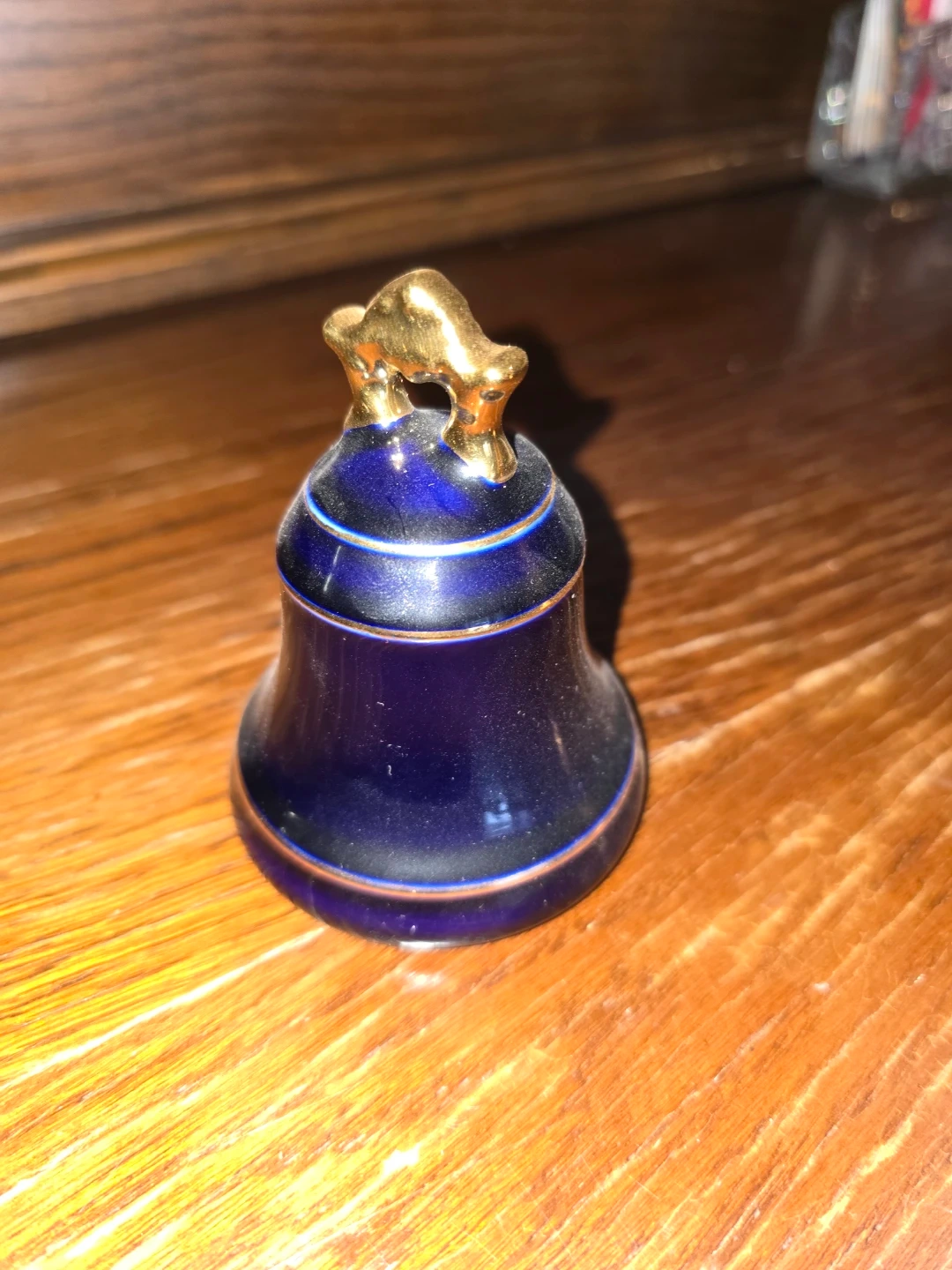 Selling a beautiful Limoges Castel Champs Elysées bell. It's a lovely dark blue with gold accents and a delicate floral design. It's in great condition and would make a wonderful addition to any collection