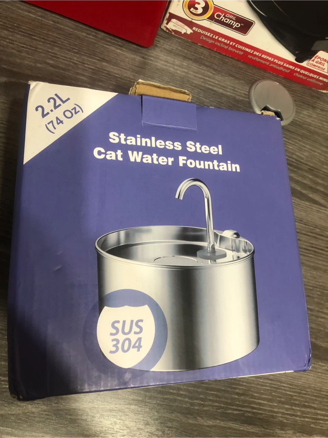 Selling a stainless steel cat water fountain! It holds 2.2L (74oz) of water. It's brand new and still in its original packaging. Includes the user manual and everything you need to get started!