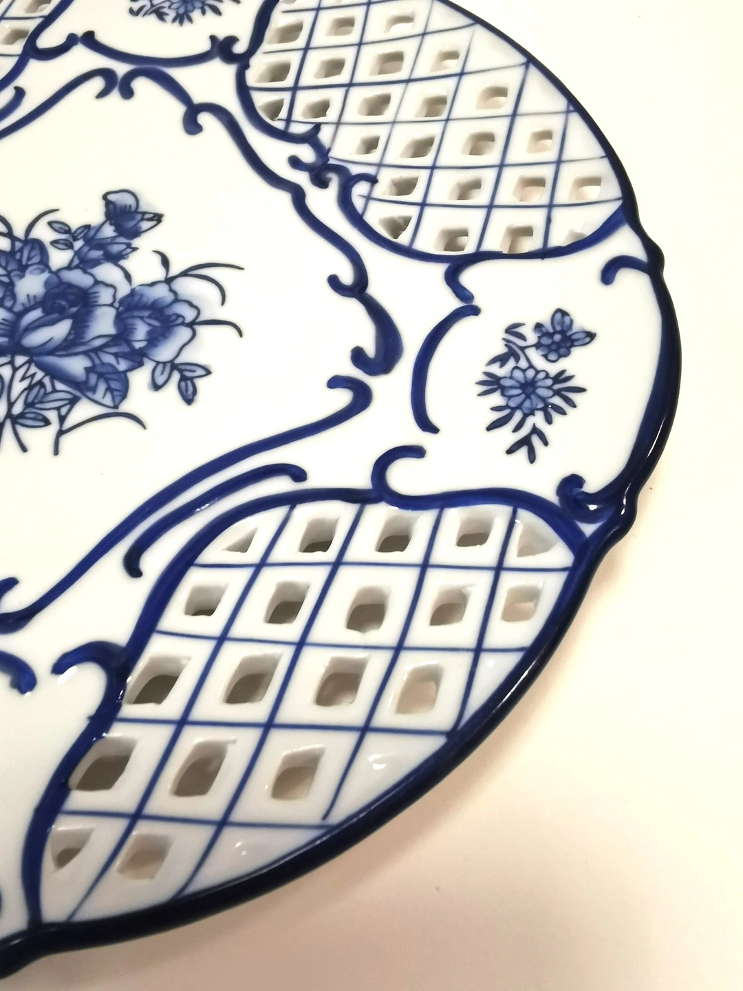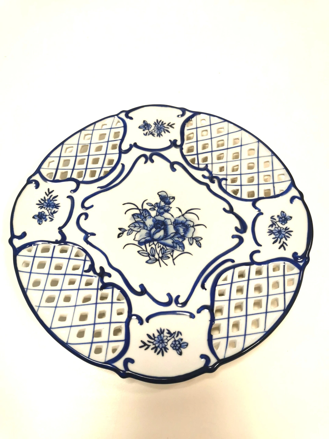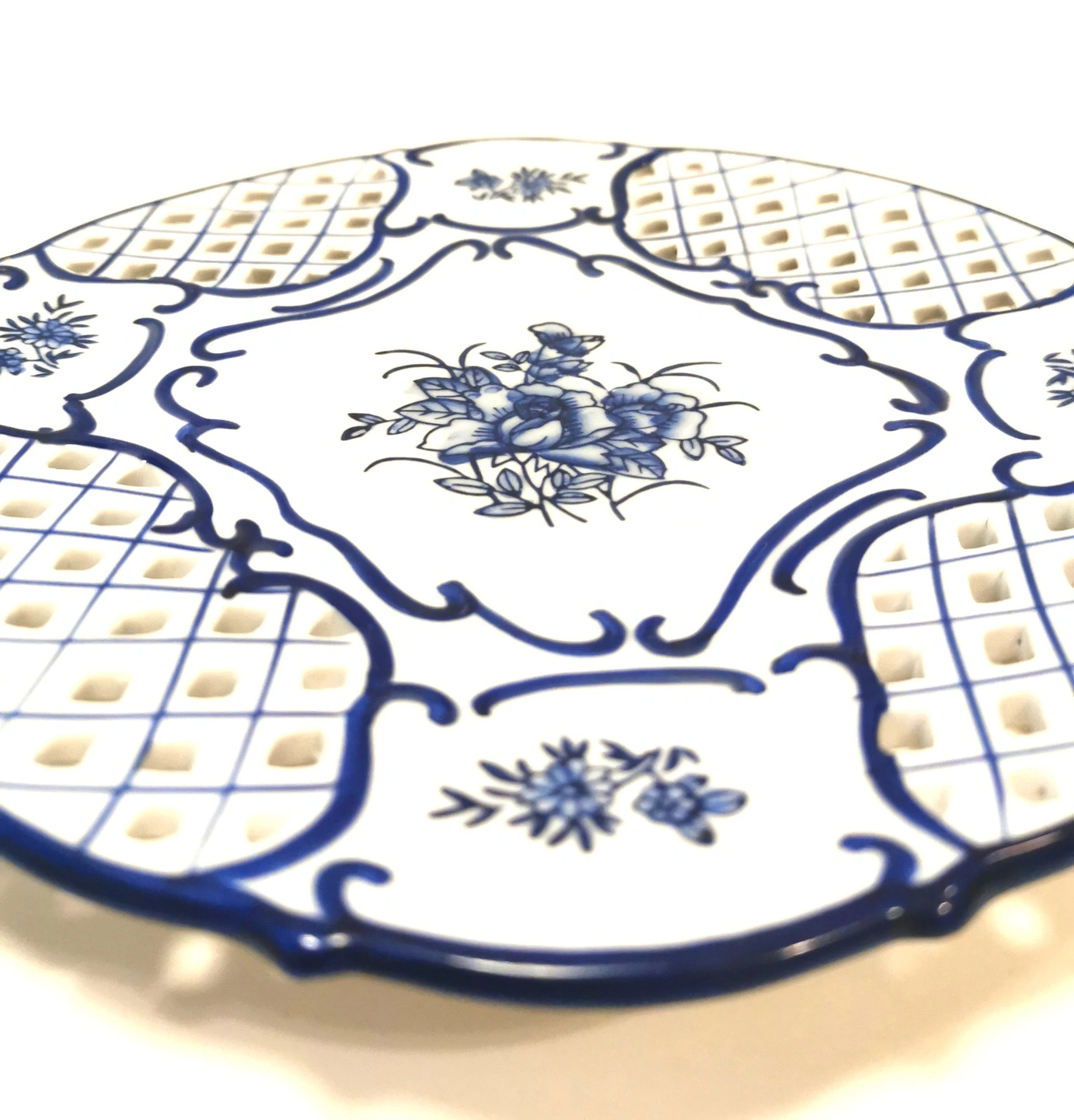 Mid-Century West German Reticulated Porcelain Plate – Blue Rose Design