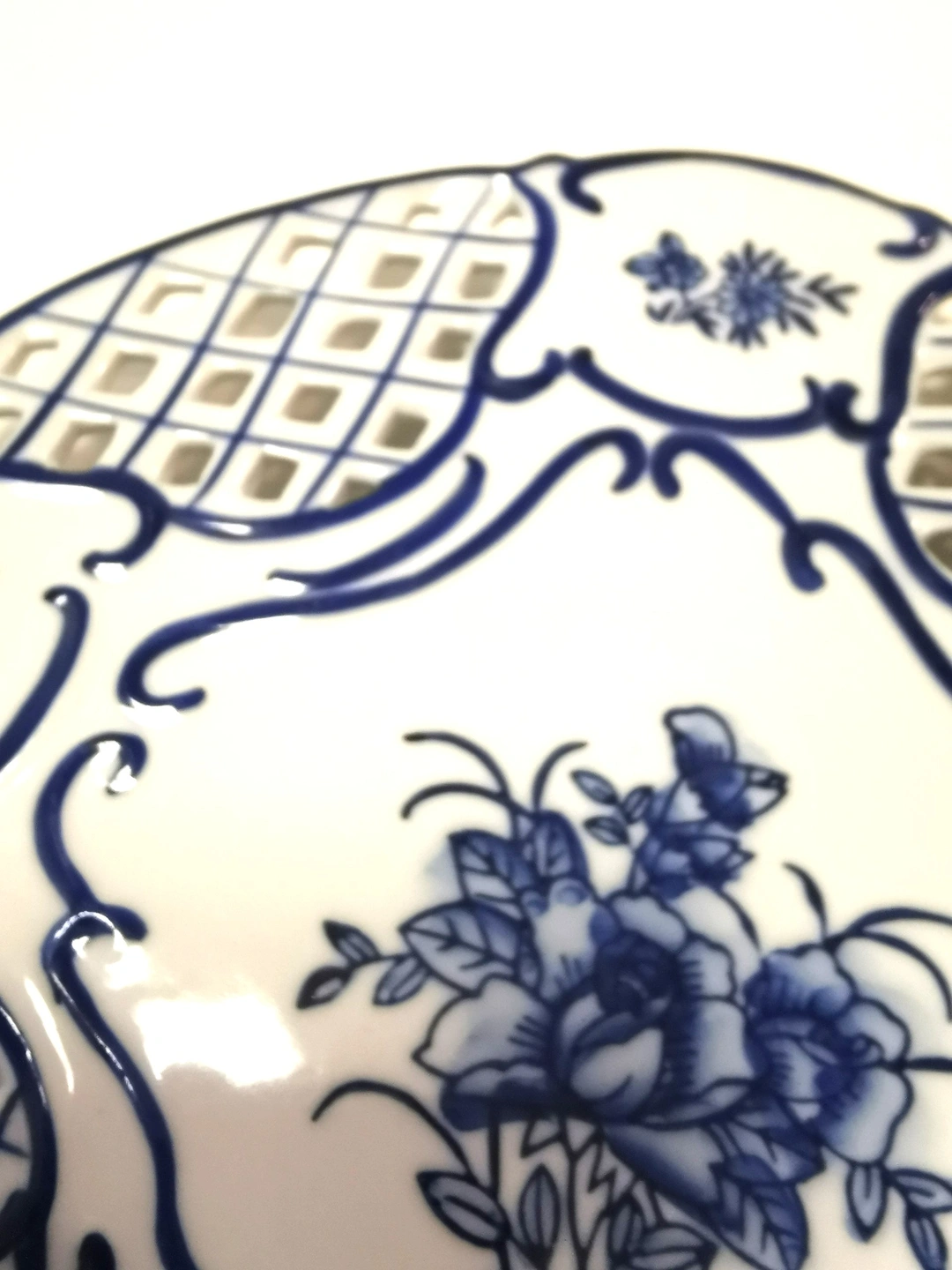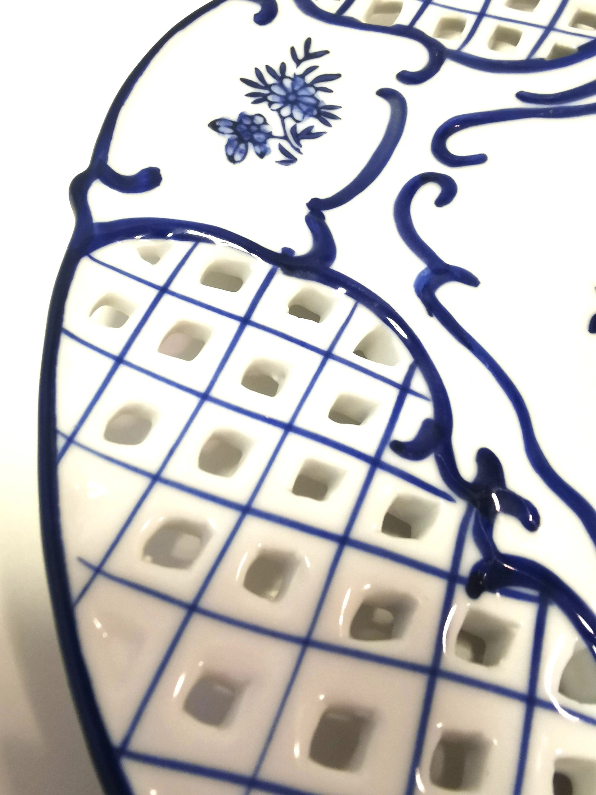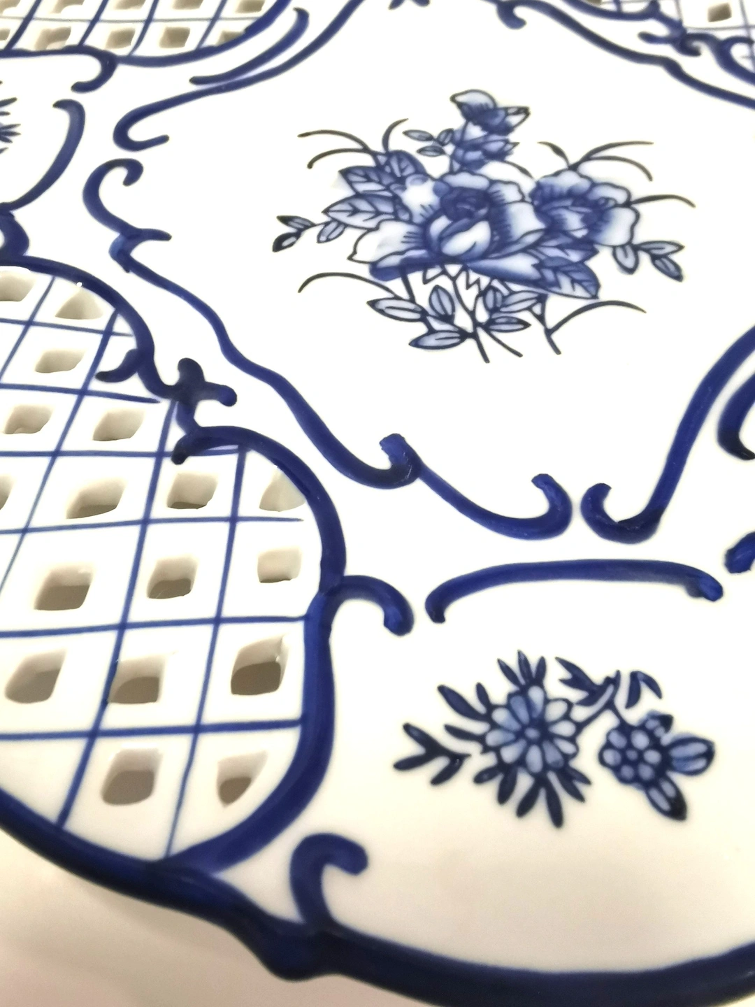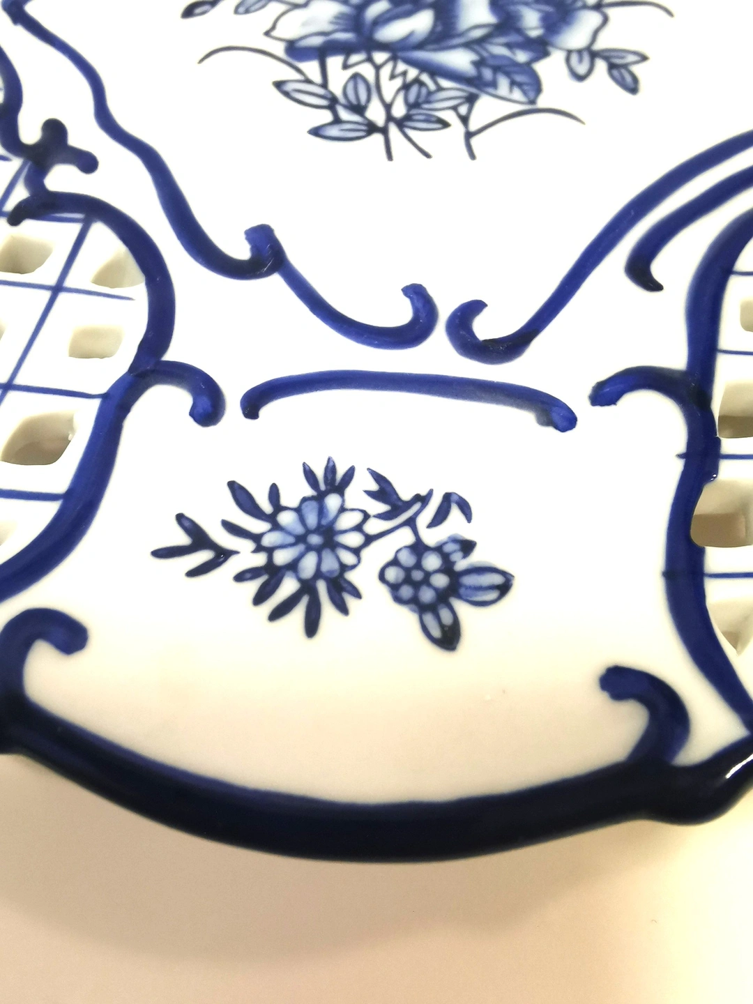 Mid-Century West German Reticulated Porcelain Plate – Blue Rose Design
