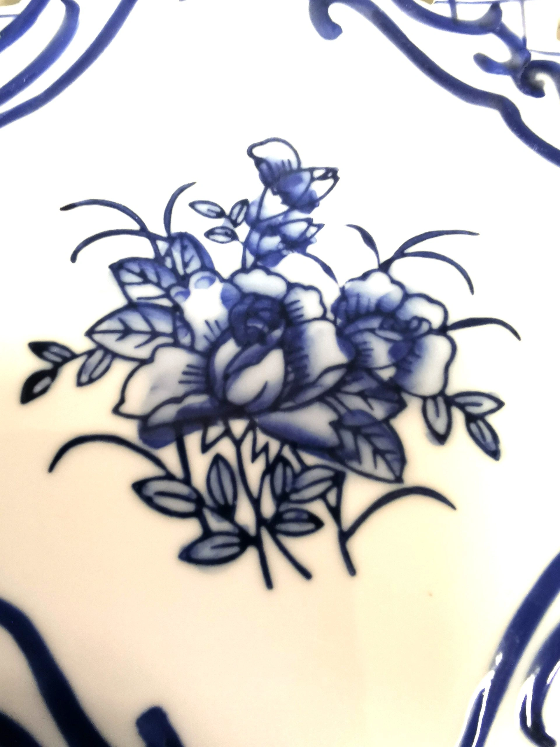 Pattern: Hand-painted central Blue Rose bouquet with matching floral sprays on the rim.