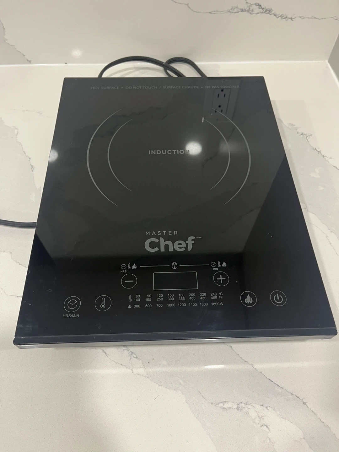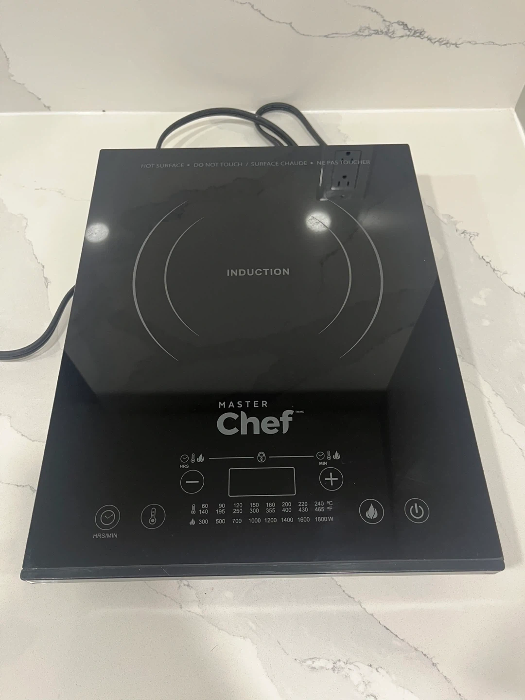 Selling a Master Chef induction cooktop in great condition! Features include adjustable temperature settings for precise cooking control and a sleek, easy-to-clean surface.