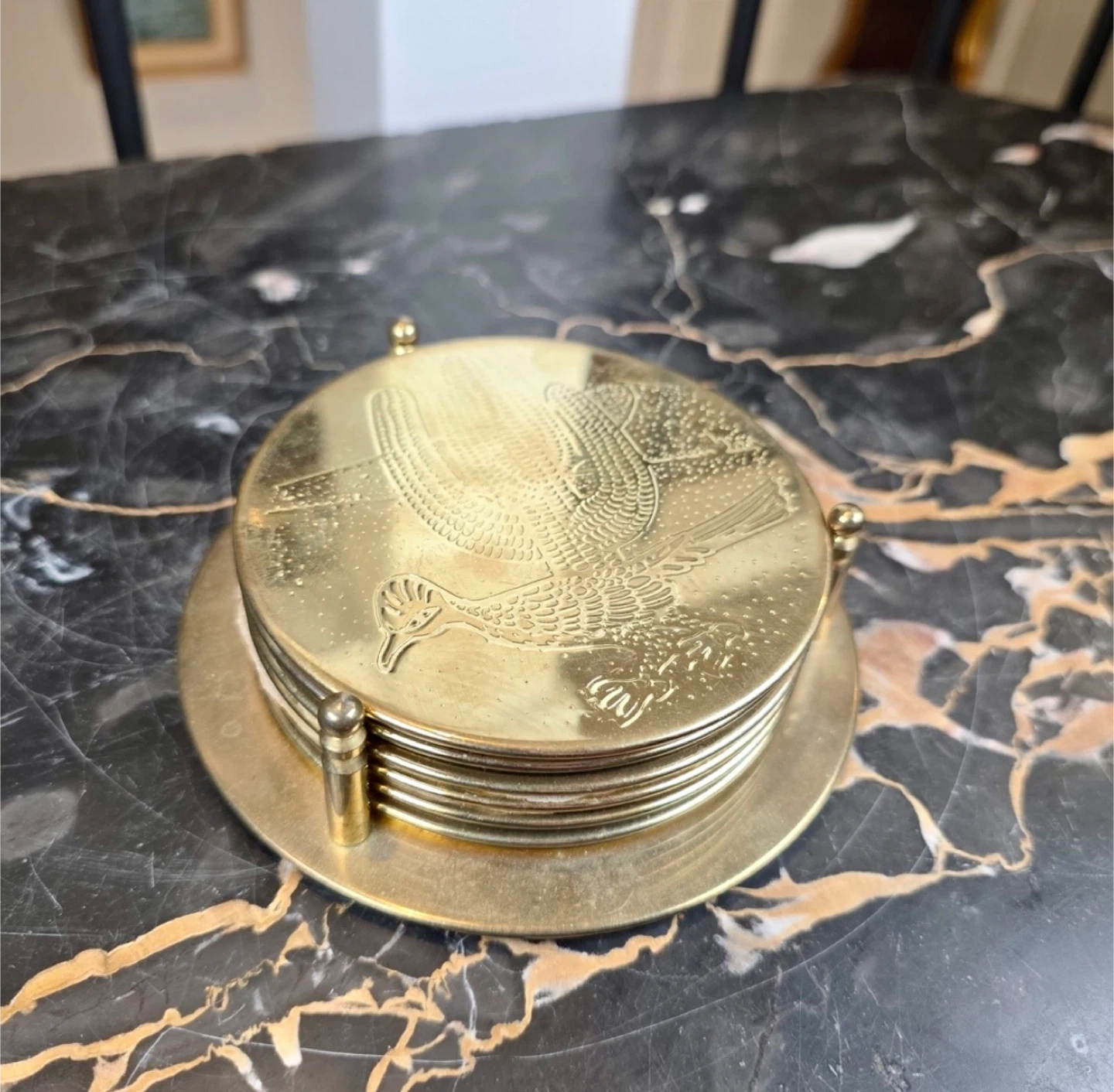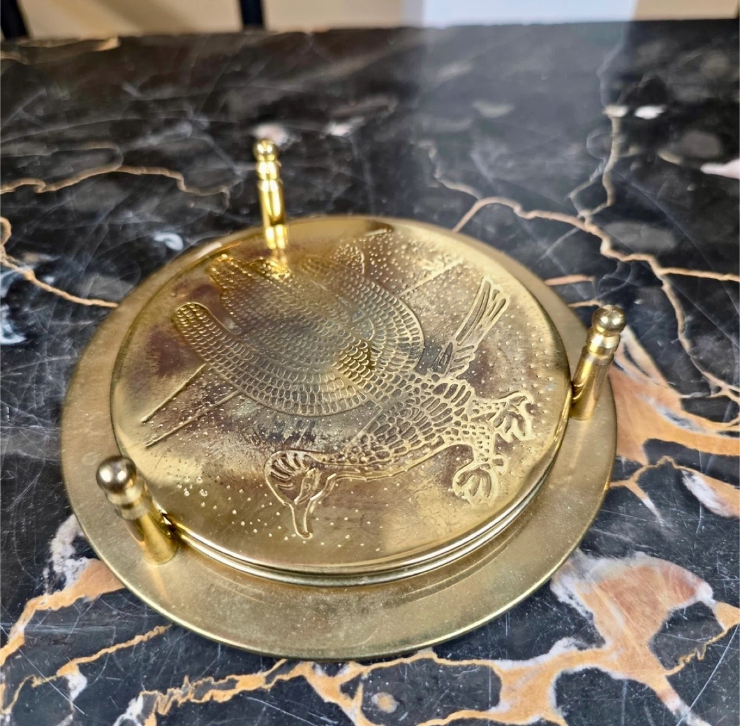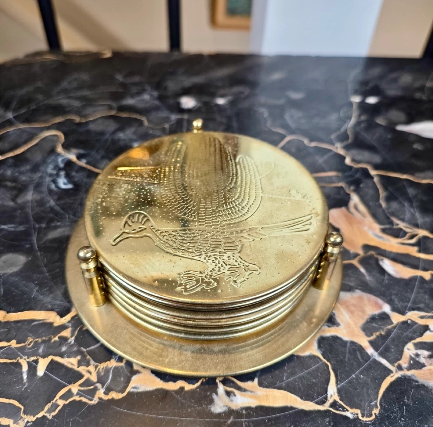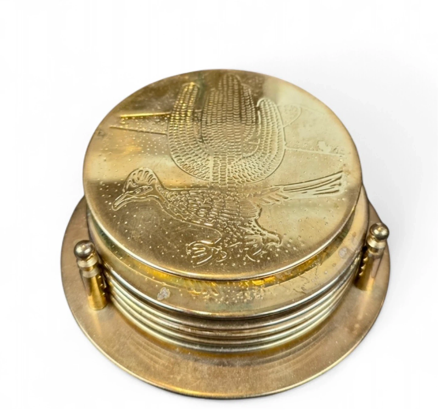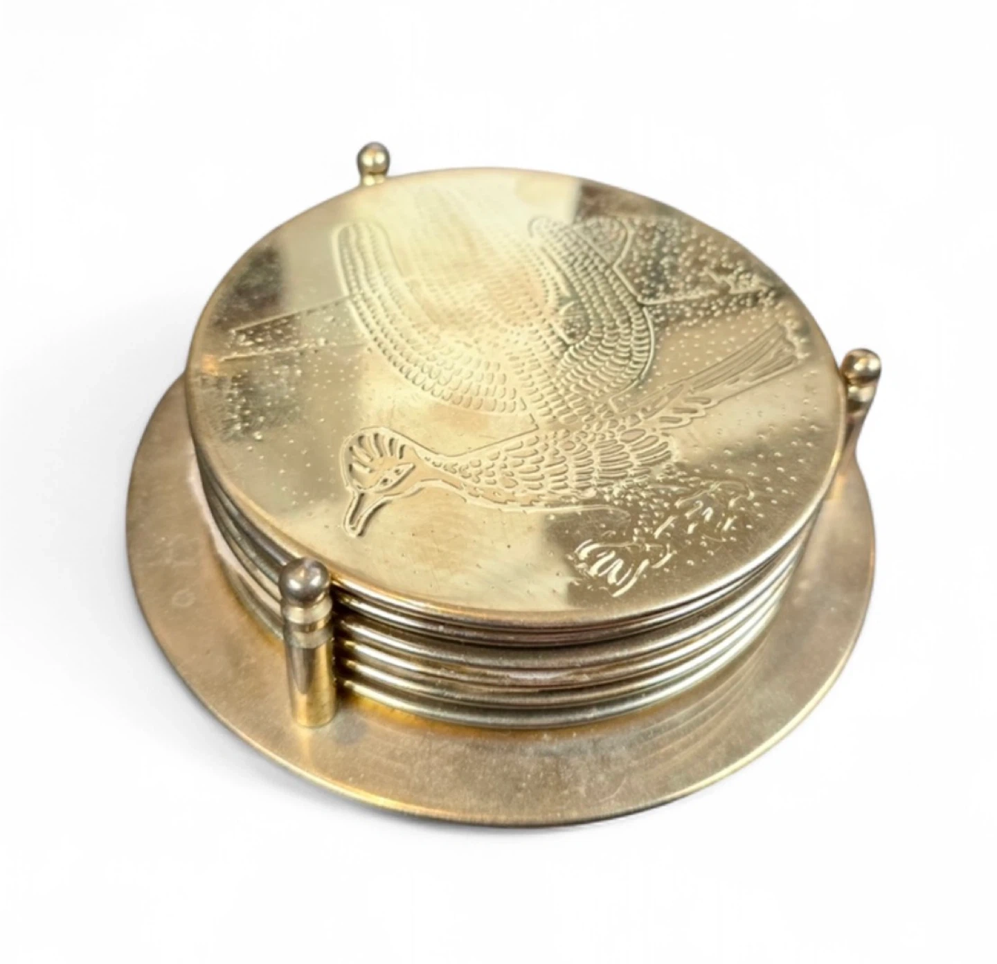 Vintage Brass Etched Southwestern Barware Coaster Set