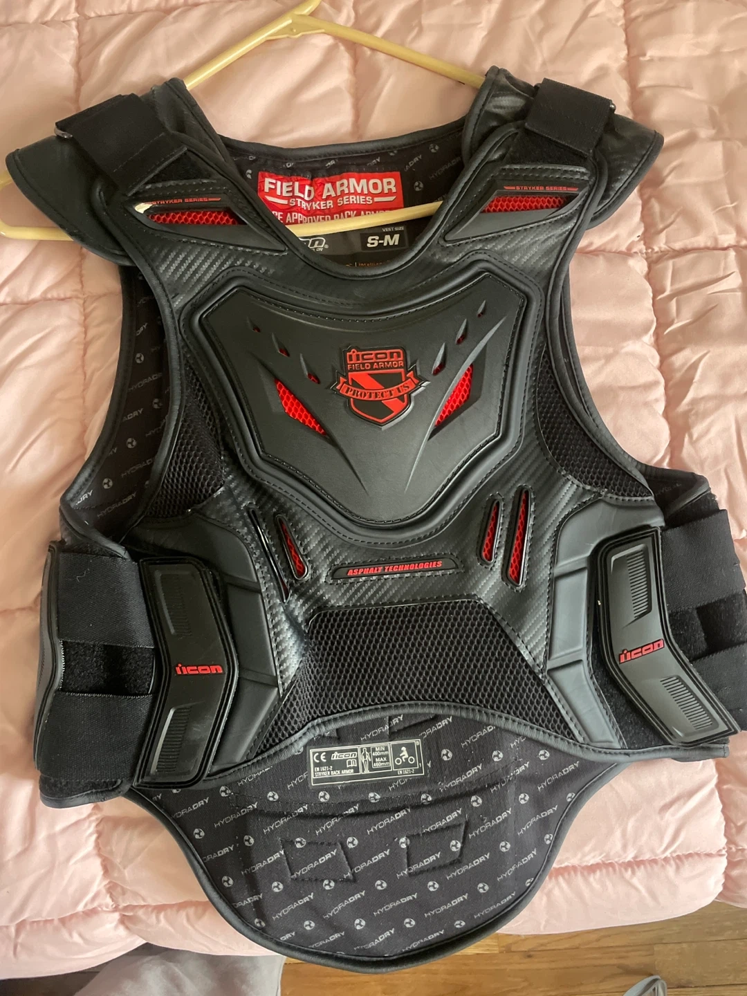 Selling an Icon Field Armor Stryker Series vest in size S-M. It's in great condition and ready for a new adventure! This vest offers excellent protection with its asphalt technology design and sleek black color.