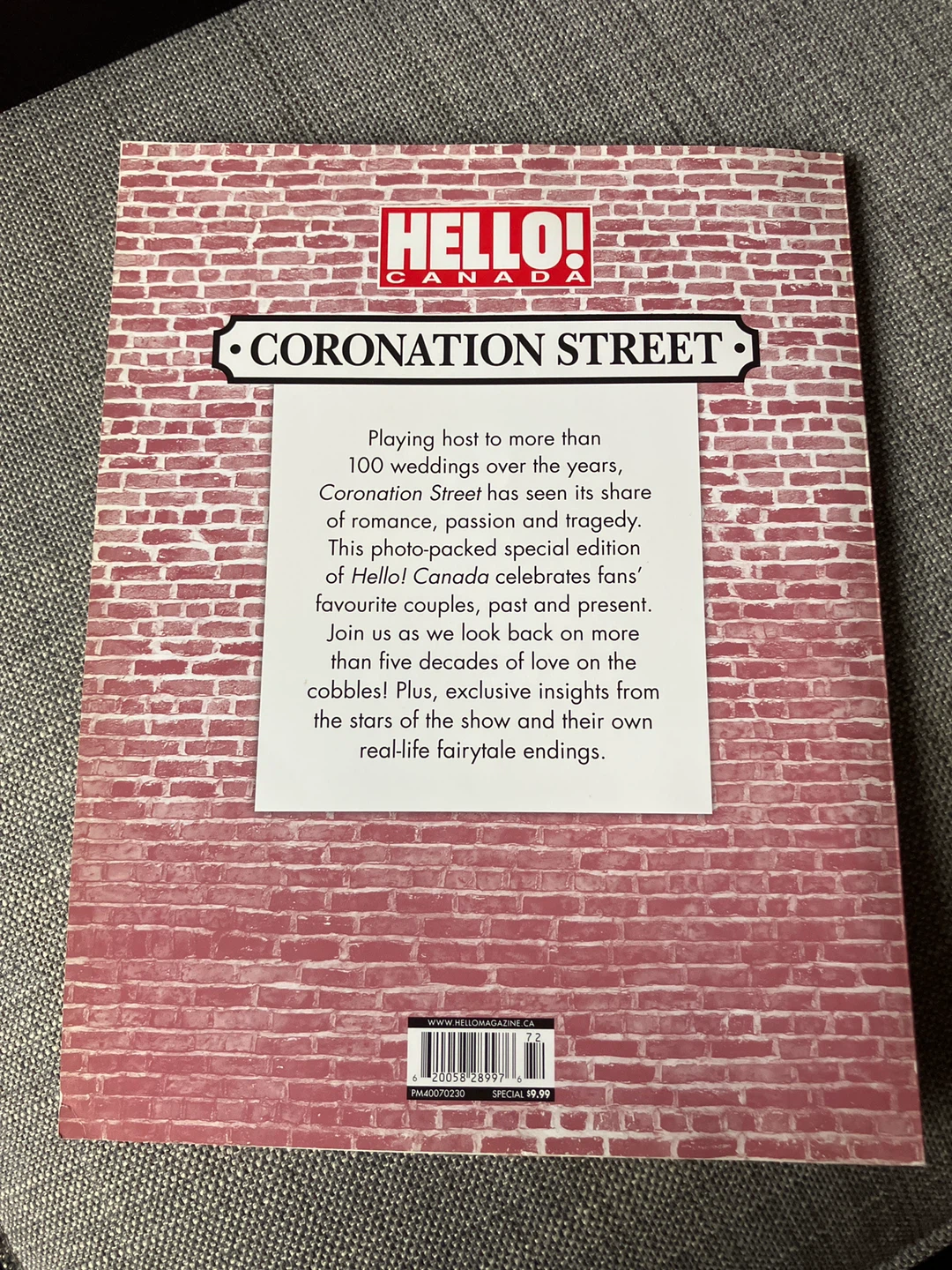 Selling a special collector's edition of Hello! Canada featuring Coronation Street's Greatest Love Stories. This edition has 100 pages of unforgettable romances, including the stars' real-life loves. It's a photo-packed special edition celebrating fans' favourite couples, past and present