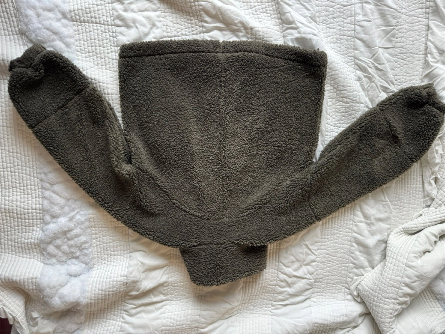 Selling a cozy Lululemon Scuba Oversized Fleece in olive green. It's in great condition and perfect for staying warm! The material is super soft and comfortable.