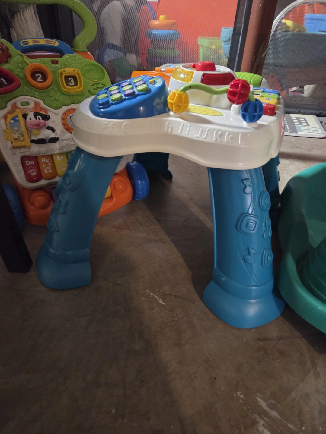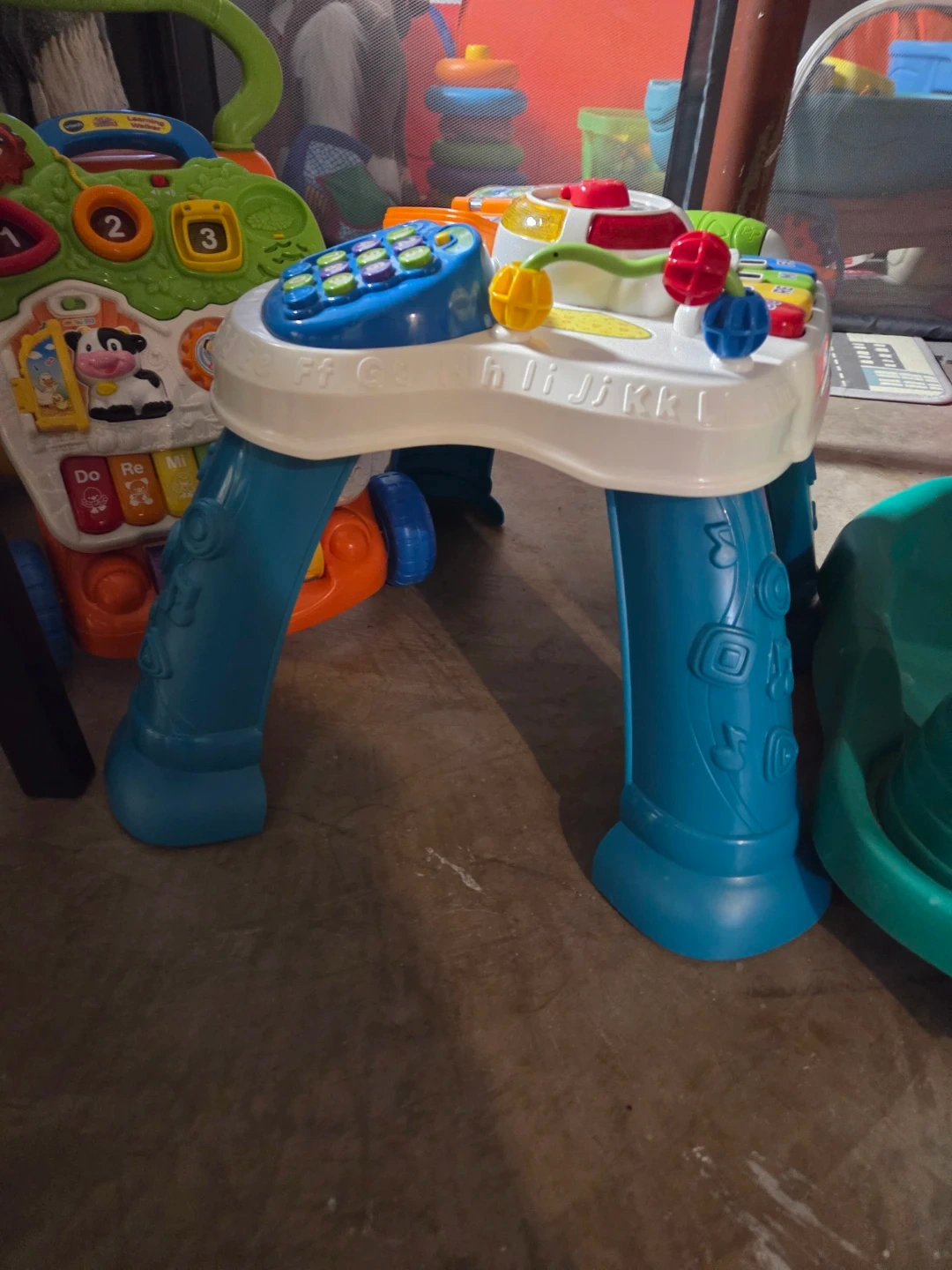 This is a VTech 2-in-1 Learn & Discover Activity Table! It's in great shape and ready for a new little one to enjoy. It's perfect for helping your child learn and explore with fun activities and sounds