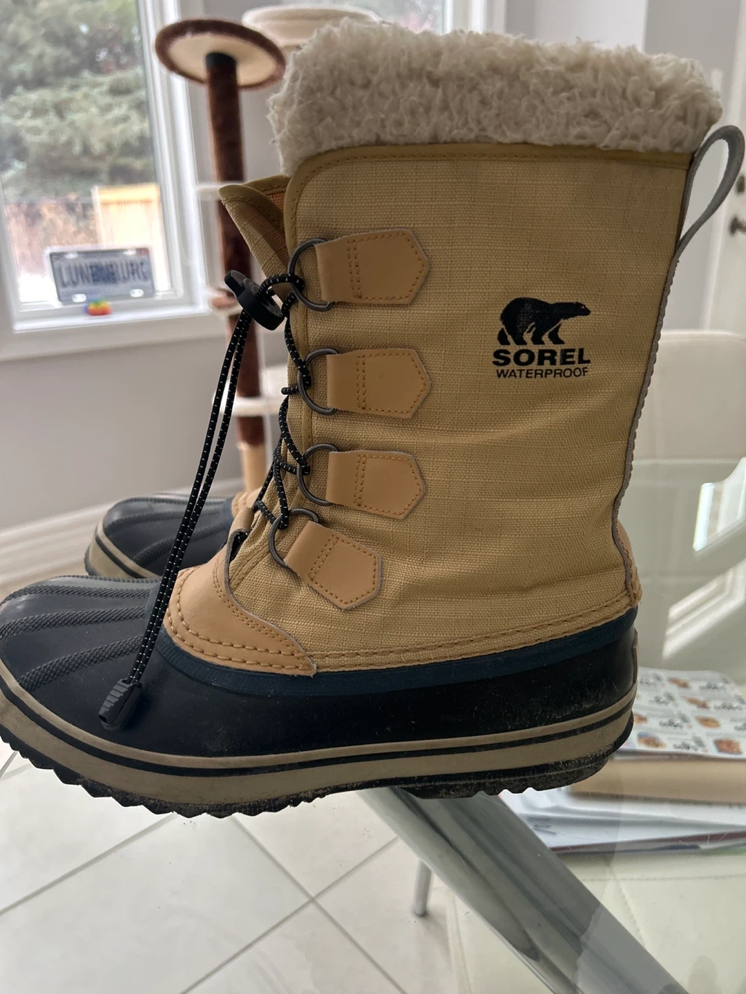 Cozy Men’s Sorel winter boots in great condition! These are a size 9 and ready to keep your feet warm and dry this winter season. They also come with Ugg sheepskin insoles.