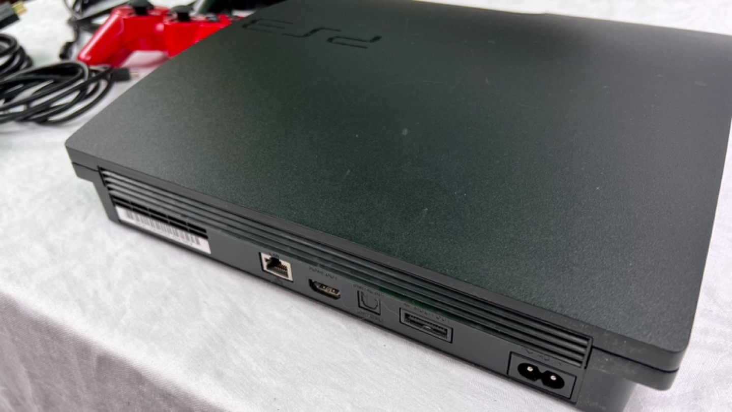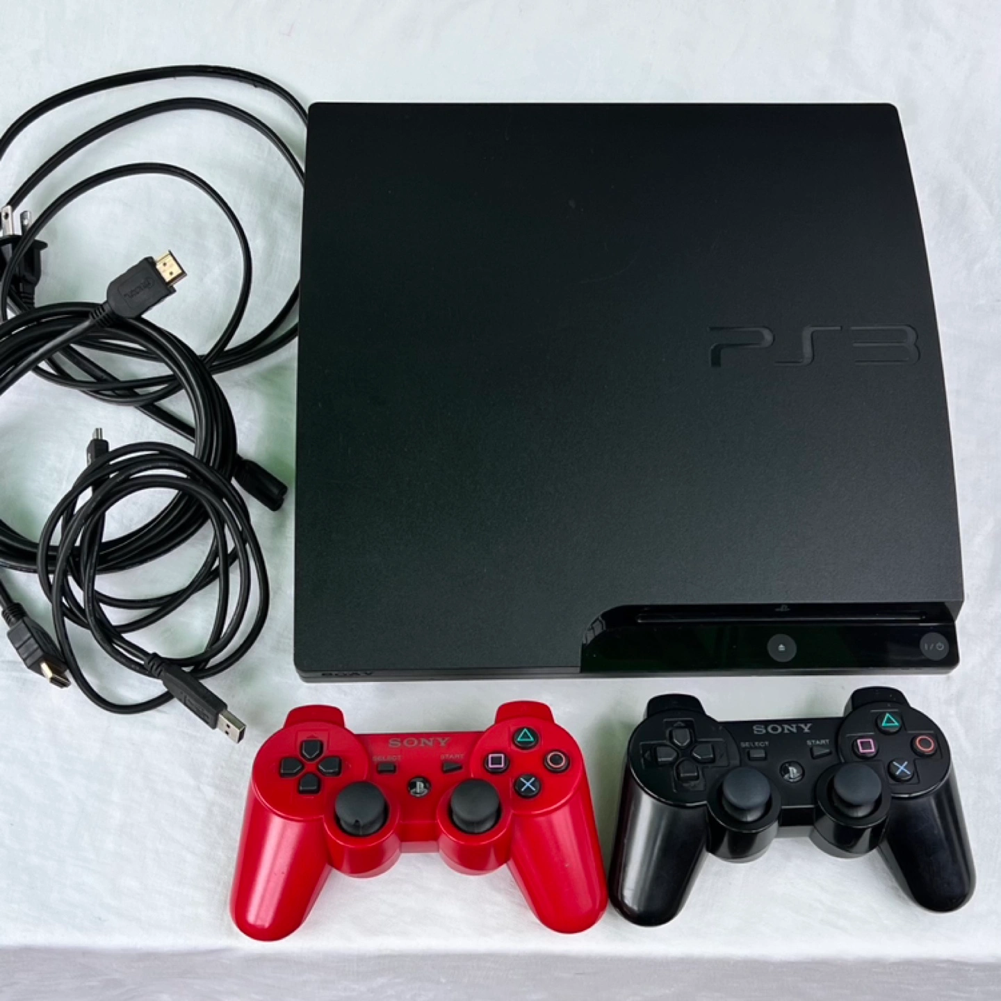 PS3 Slim console 320gb with 2 controllers (1 black, 1 red)