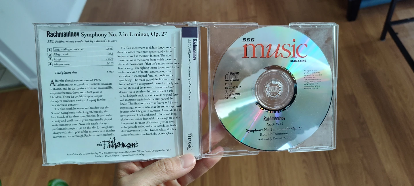 Selling a CD of Rachmaninov's Symphony No. 2 in E minor, Op. 27. This is Volume III Number 3 from the BBC Music Magazine collection. It features the BBC Philharmonic conducted by Edward Downes. Enjoy over 60 minutes of classic music!