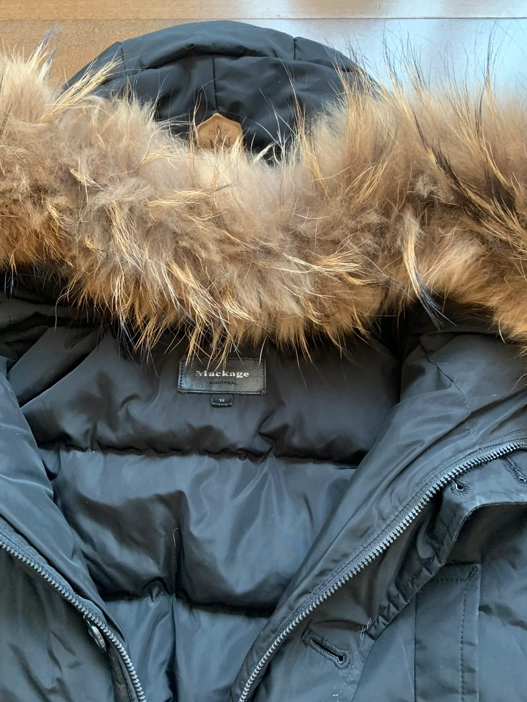 Selling a Mackage Montreal black down parka in size 10. It's in great condition and ready to keep you warm this winter! The fur trim adds a touch of luxury, and the multiple pockets are super practical