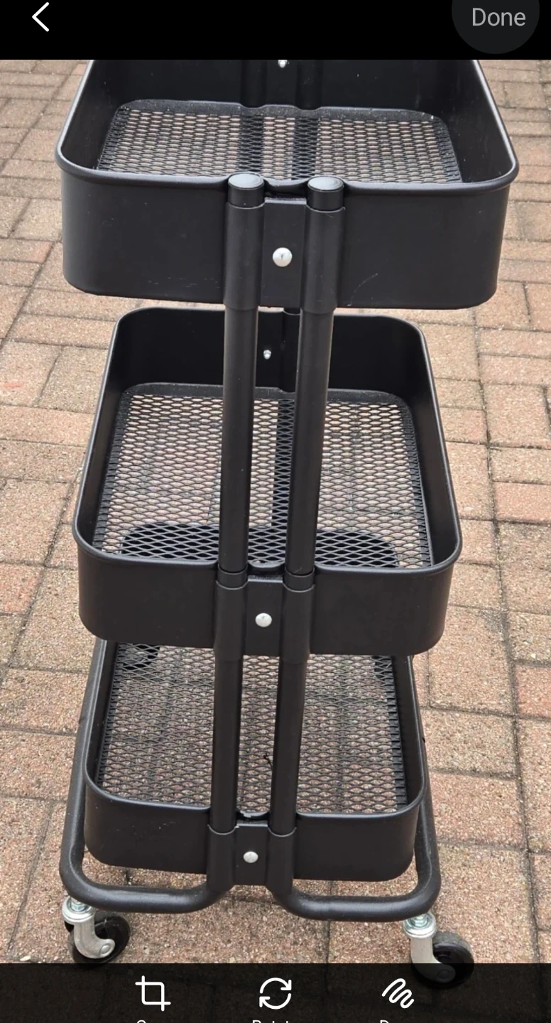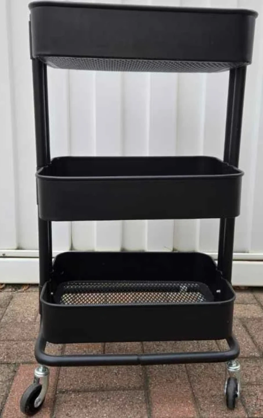 Selling a black IKEA Råskog utility cart! It's in great shape and perfect for adding some extra storage to your home. The cart is easy to move around thanks to its sturdy construction and four casters.