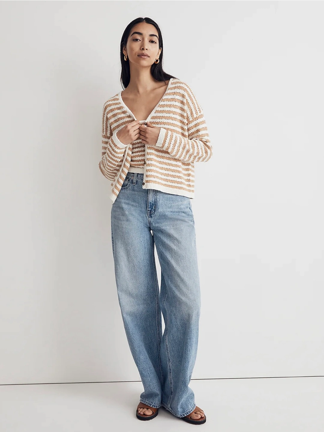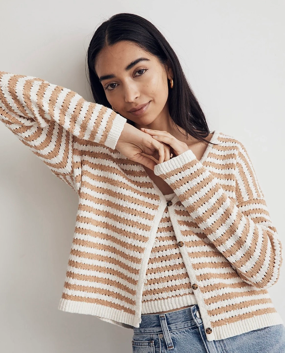 Madewell Open-Stitch Cardigan Sweater in Stripe