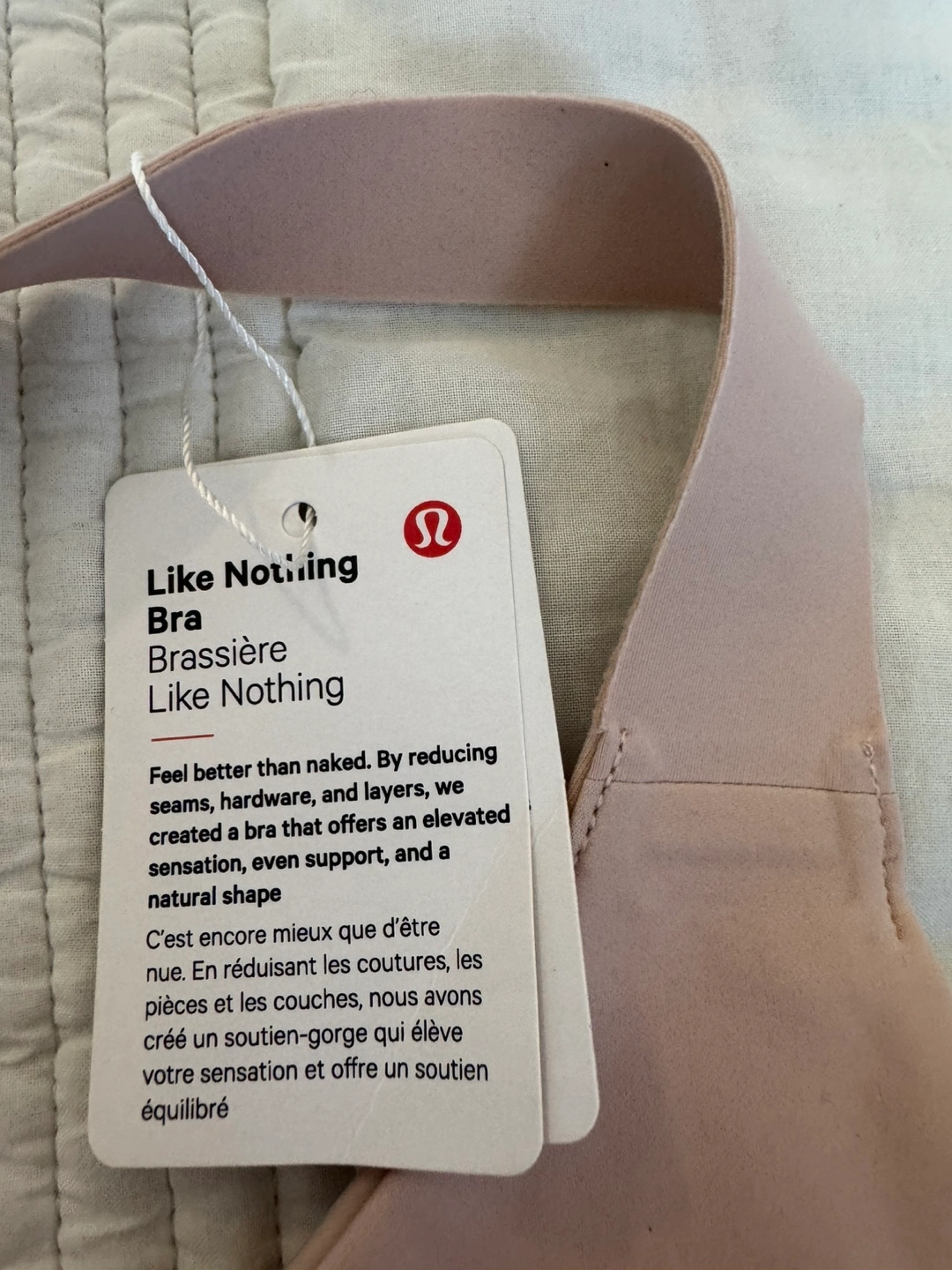 Selling a Lululemon Like Nothing Bra in size 8! This bra offers an elevated sensation and a natural shape. It feels better than naked by reducing seams, hardware, and layers. Perfect for a comfortable and supportive fit!