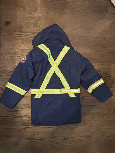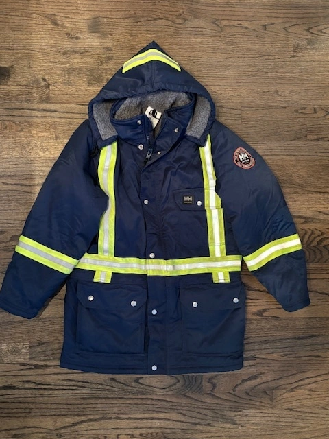 Brand new condition insulated work jacket with high-visibility reflective striping. Warm, durable, and perfect for cold weather work or outdoor use.