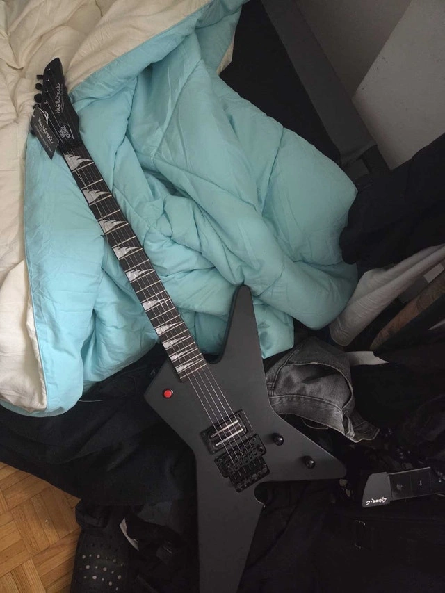 Selling my Westcreek High Voltage electric guitar, perfect for shredding some serious riffs. This guitar has a sleek, aggressive design and delivers a powerful sound. It is in used condition, so it has some wear and tear, but it plays great.