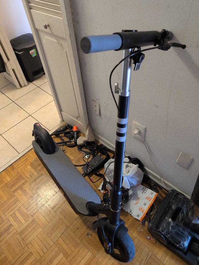 Selling my used electric scooter, perfect for short commutes and zipping around town! This scooter is in good condition and ready for a new owner. Specifications: * Max Speed: about 25 km/h * Range: 80km on low usage. I am looking to get it out of my home. Please note, if this ad is still up, the scooter is still available, so no need to ask! Happy scooting!