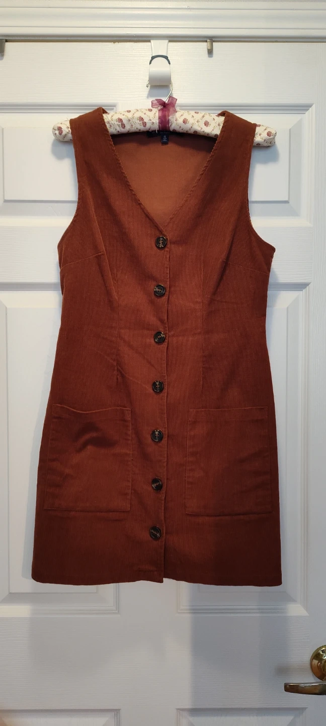 Cute corduroy dress in a lovely brown colour. It's a in great condition! Perfect for layering or wearing on its own.
