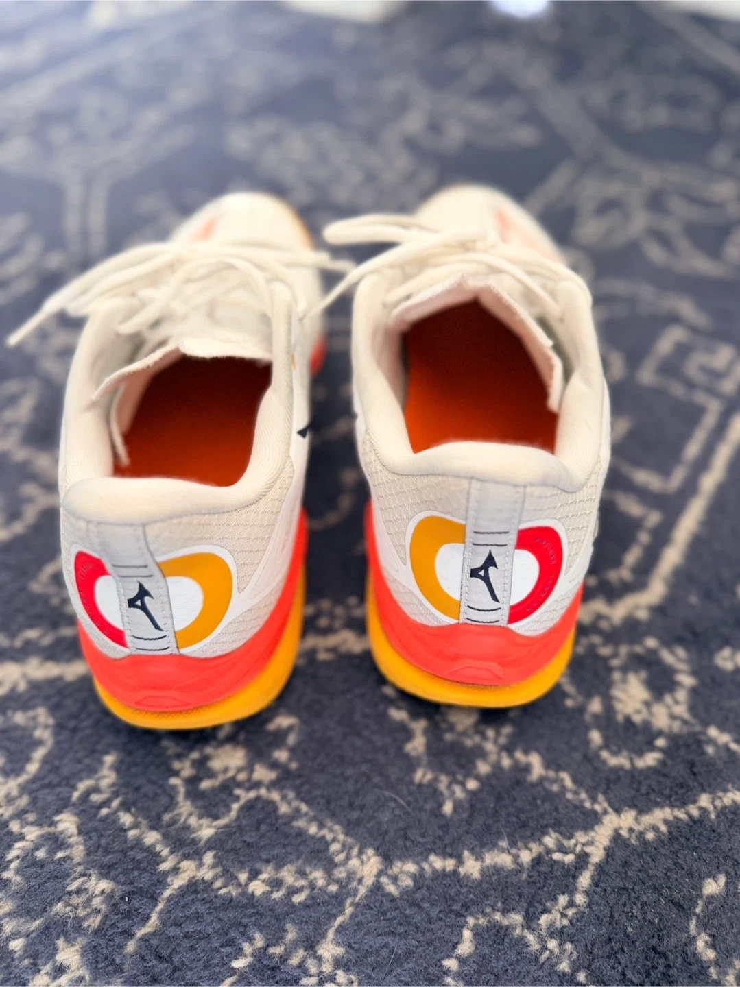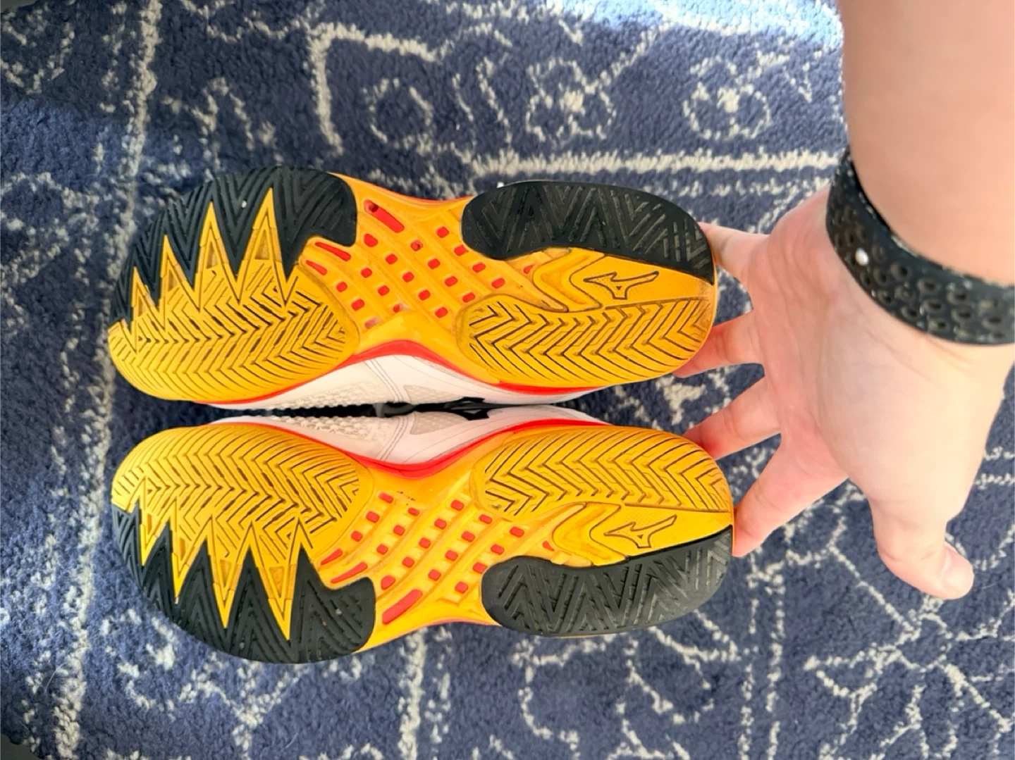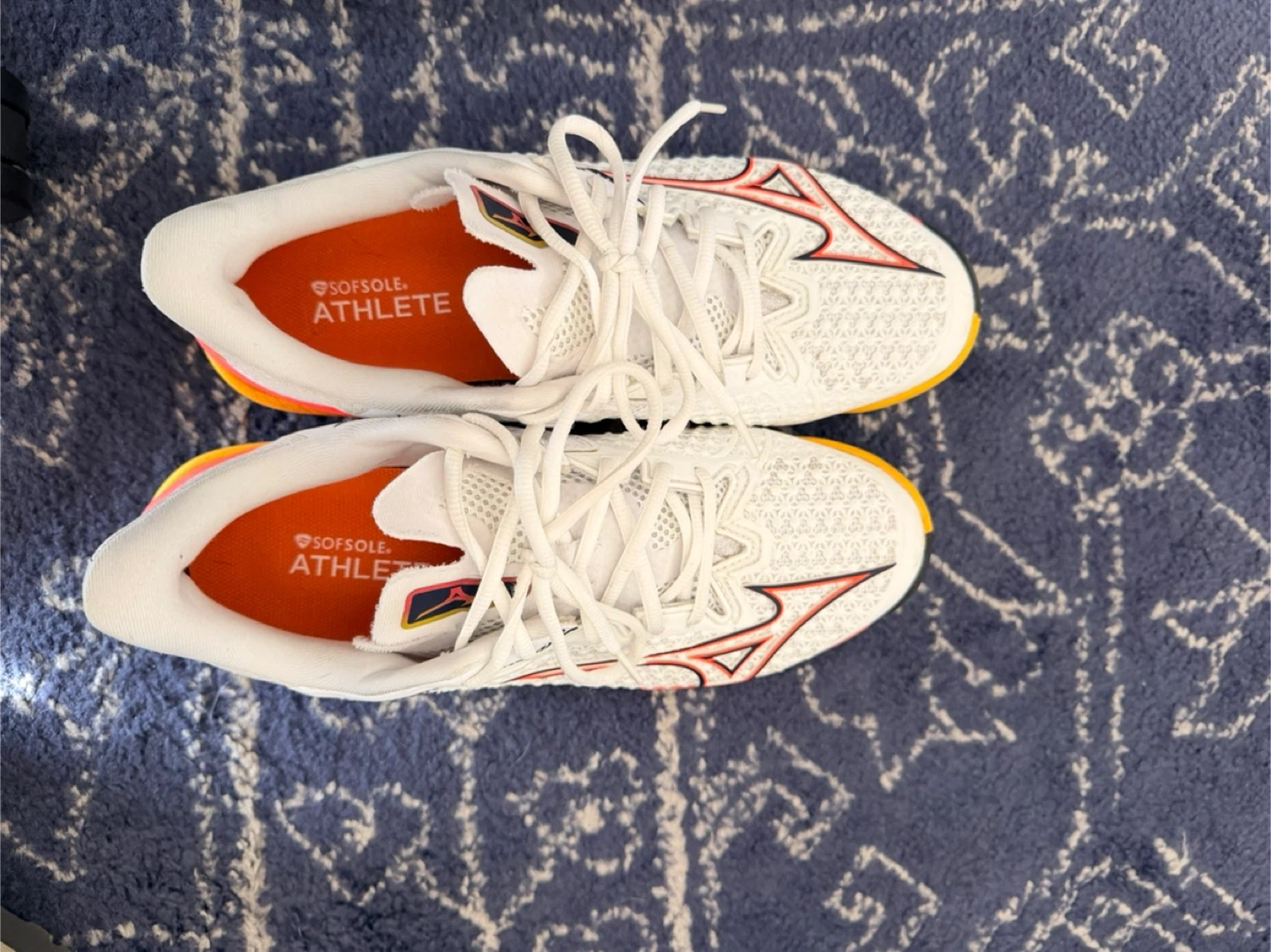 Selling a pair of Mizuno Wave Exceed Tour 6 tennis shoes that are US size 9. These are white with orange and yellow accents. I’ve recently replaced the insert soles with Sofsole athelete for good cushion and used once. Super light and responsive. They are in good condition and ready for the court!