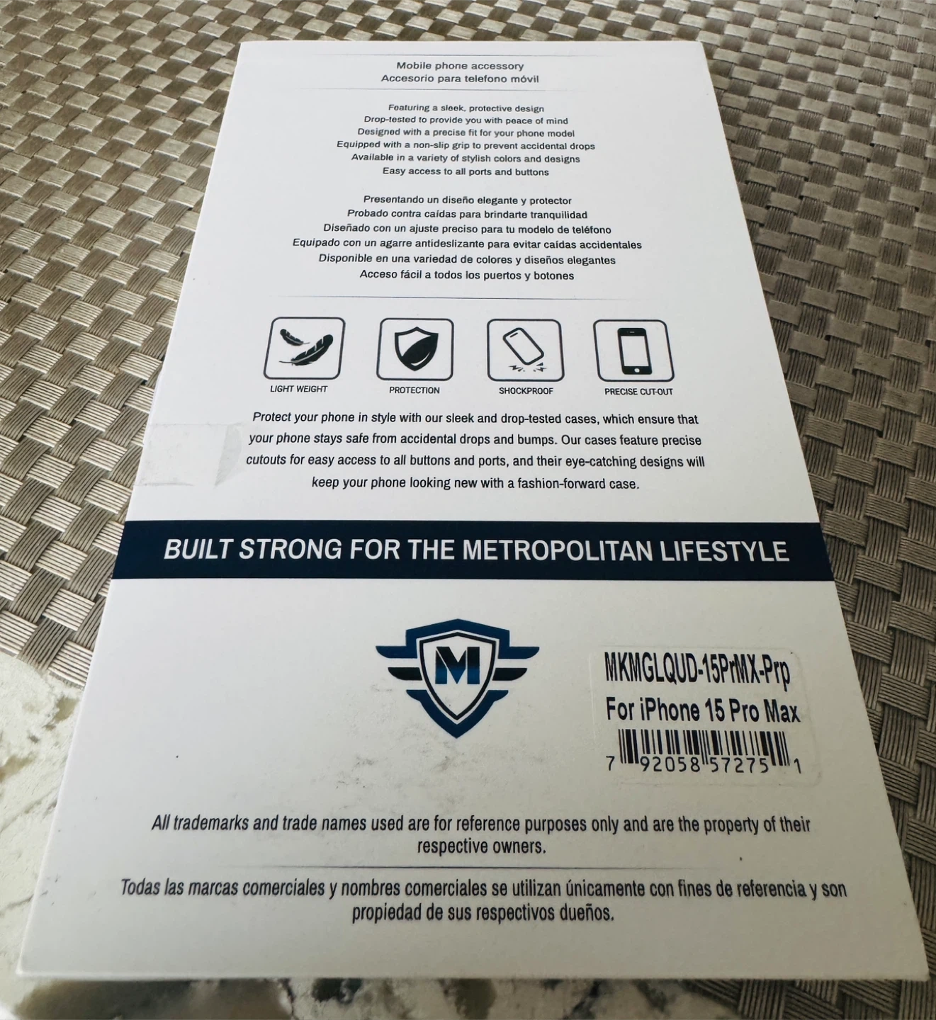 Selling a brand new METKASE phone case for the iPhone 15 Pro Max! It's drop-tested and shockproof, so it'll keep your phone safe and looking stylish. The box is included!