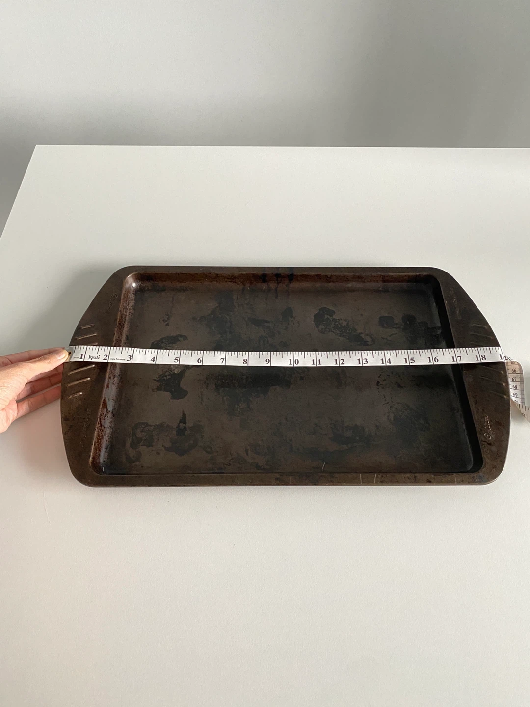 Selling a big non-stick baking sheet tray. It measures approximately 19 inches in length and 11 inches in width. In good condition and ready for new home. Some imperfections from use. Can make multiple items in one tray at the same time even, very spacious! Meet up at Vaughan TTC subway station ๐Ÿƒโ€โ™‚๏ธ ๐—™๐—ถ๐—ฟ๐˜€๐˜ ๐—–๐—ผ๐—บ๐—ฒ, ๐—™๐—ถ๐—ฟ๐˜€๐˜ ๐—ฆ๐—ฒ๐—ฟ๐˜ƒ๐—ฒ ๐Ÿ’ต ๐—˜๐˜…๐—ฎ๐—ฐ๐˜ ๐—–๐—ฎ๐˜€๐—ต ๐—ฃ๐—ฎ๐˜†๐—บ๐—ฒ๐—ป๐˜ ๐—ข๐—ป๐—น๐˜† ๐Ÿ“๐—˜๐—ฎ๐˜€๐˜† ๐—ฃ๐˜‚๐—ฏ๐—น๐—ถ๐—ฐ ๐— ๐—ฒ๐—ฒ๐˜-๐˜‚๐—ฝ โค๏ธ ๐—–๐—ต๐—ฒ๐—ฐ๐—ธ ๐—ผ๐˜‚๐˜ ๐—บ๐˜† ๐—ผ๐˜๐—ต๐—ฒ๐—ฟ ๐—น๐—ถ๐˜€๐˜๐—ถ๐—ป๐—ด๐˜€ ๐—ณ๐—ผ๐—ฟ ๐—ด๐—ฟ๐—ฒ๐—ฎ๐˜ ๐—ฑ๐—ฒ๐—ฎ๐—น๐˜€!