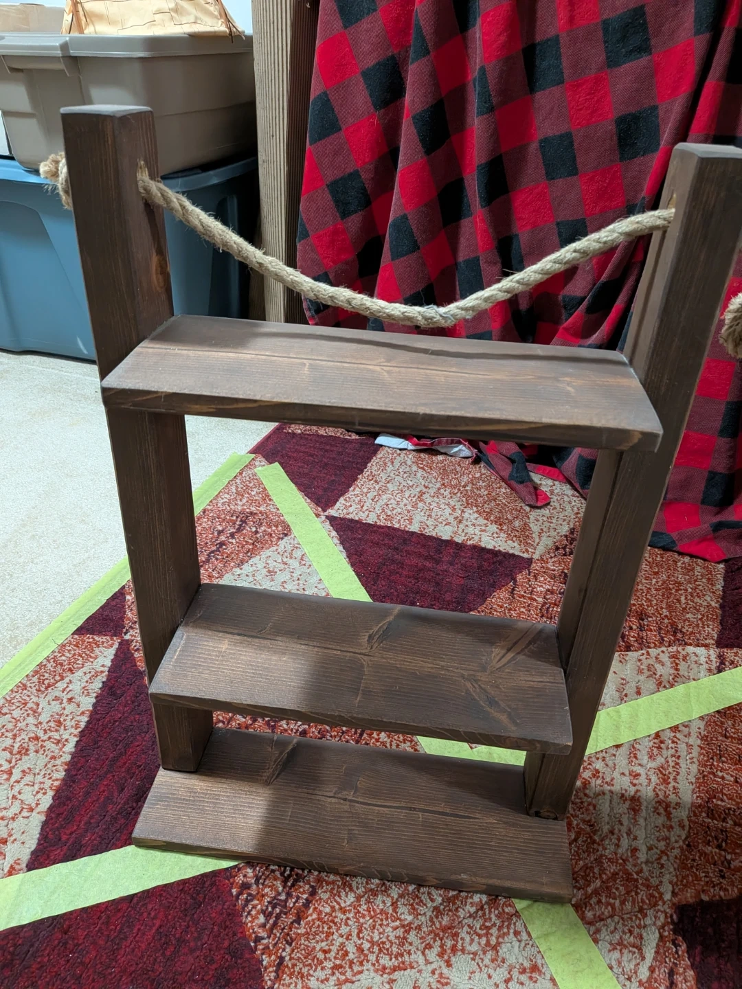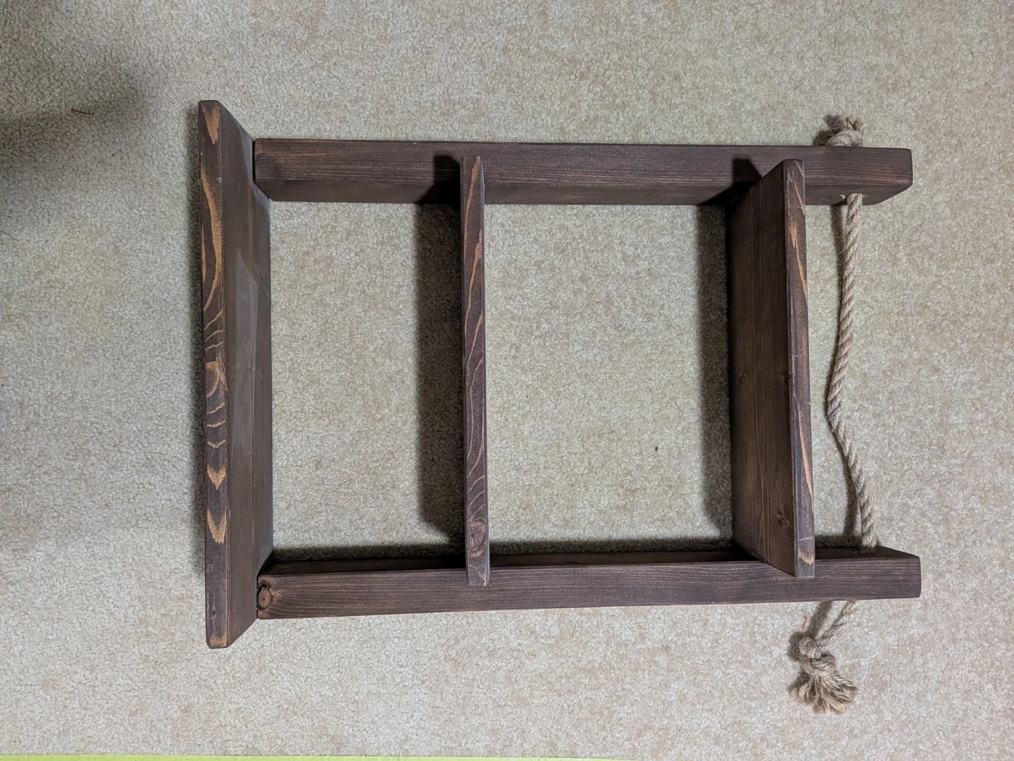 This is a charming rustic hanging shelf, perfect for adding a touch of warmth to any room. Husband doesn't like so looking for another one. My loss is your gain. Paid $20 on FBM selling for $15.