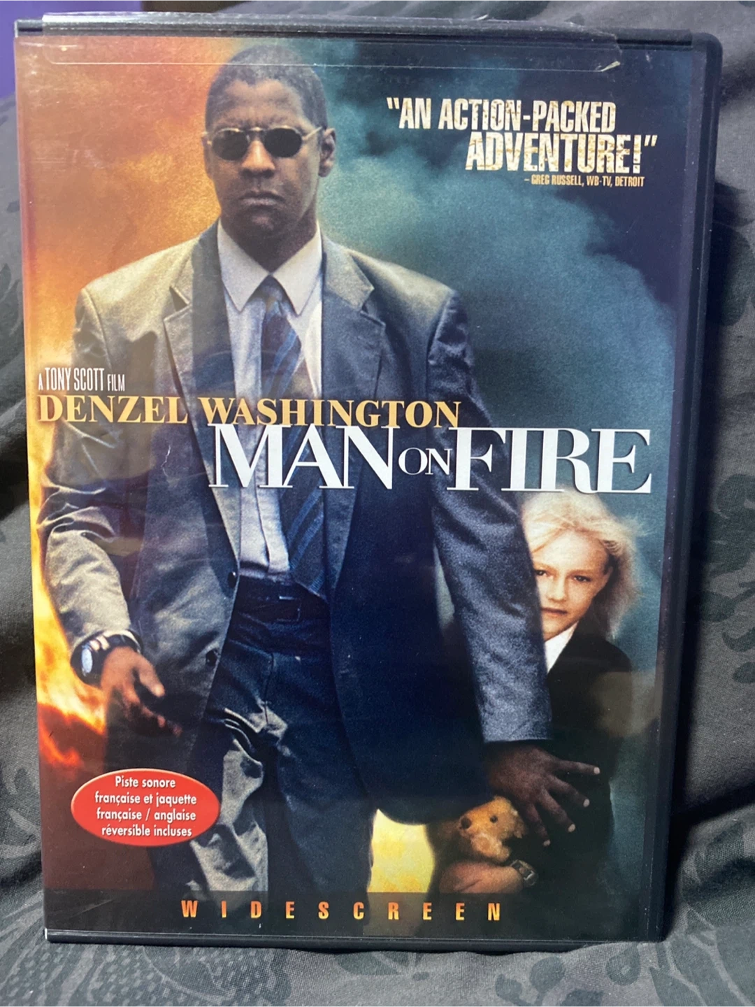 Selling a DVD of the movie Man on Fire, starring Denzel Washington. Includes director audio commentary by Tony Scott, Co-star Dakota Fanning, Lucas Foster, and Screenwriter Brian Helgeland. Enjoy this action-packed adventure!