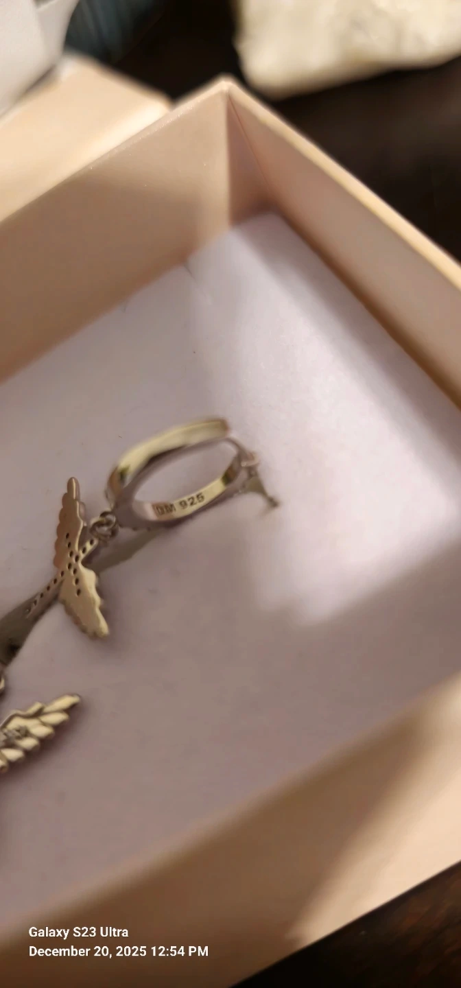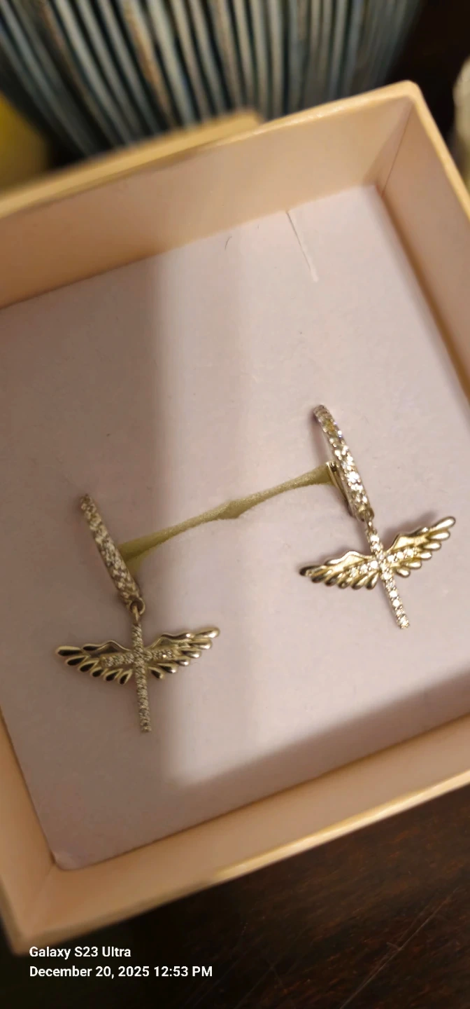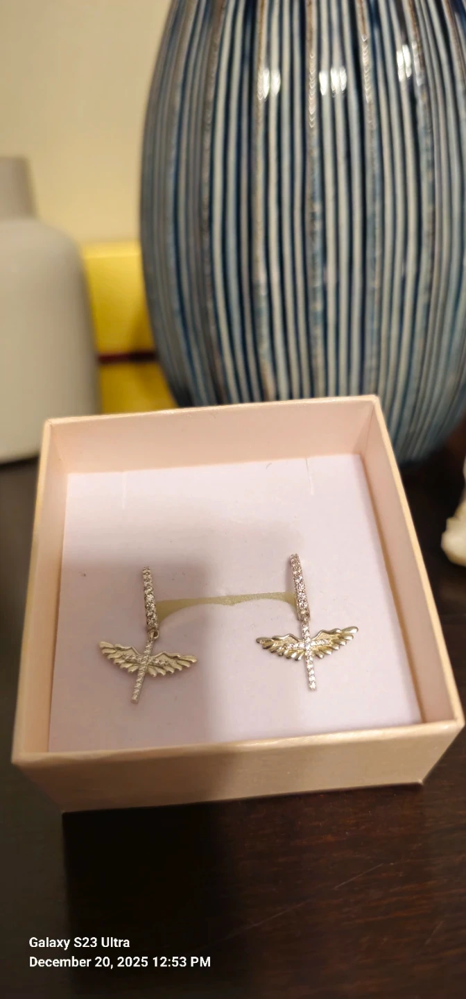 diamond accents and an angel-wing cross dangle design. Elegant, lightweight, and easy to wear. Marked 925 (see photos). In good condition and ready to wear.